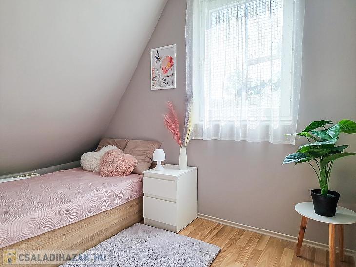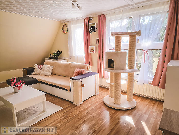 Az alsó szinten három tágas szoba, konyha, fürdőszoba, kamra és közlekedő található, míg a tetőtérben egy nappali, három hálószoba, konyha, kamra, fürdőszoba és közlekedő került kialakításra. A két szint jelenleg külön bejárattal rendelkezik, a tetőtér külső feljárattal van kialakítva, de belső lépcső kialakítására is van lehetőség.