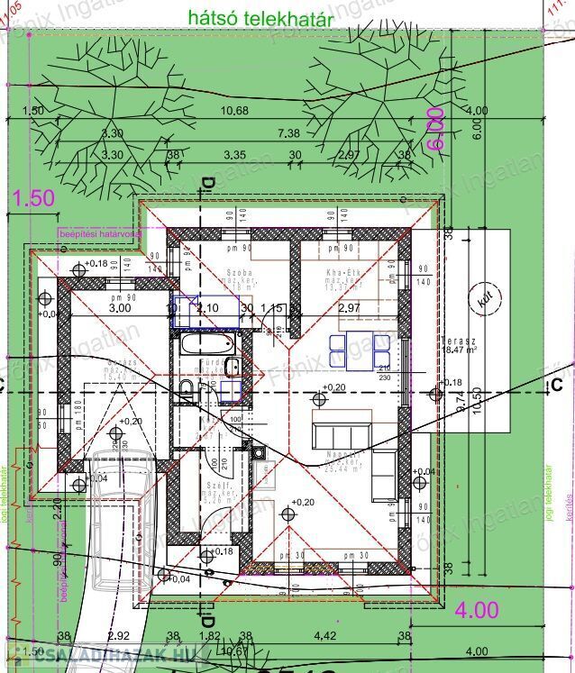 50 cm vastag Ytong külső fal, 5 cm dryvit szigeteléssel, beépíthető tetőtér, öntartó födémmel