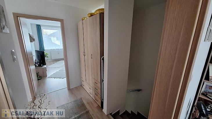 Elosztása: Földszinten található egy amerikai konyhás nappali, tároló, fürdőszoba zuhanyzóval, előszoba és egy garázs, míg az emeleten 3 db tágas hálószoba és egy kádas fürdőszoba.