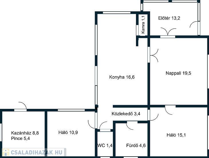 Elrendezése: Nappali, 2 db hálószoba, konyha, fürdőszoba, külön WC.