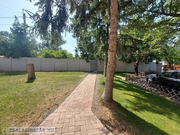 Az udvaron található egy 17 nm-es garázs szerelő aknával, valamint egy 20 nm-es fedett kocsibeálló is. A kert gondosan ápolt, örökzöldekkel és termő gyümölcsfákkal, ami igazán barátságossá teszi a környezetet.