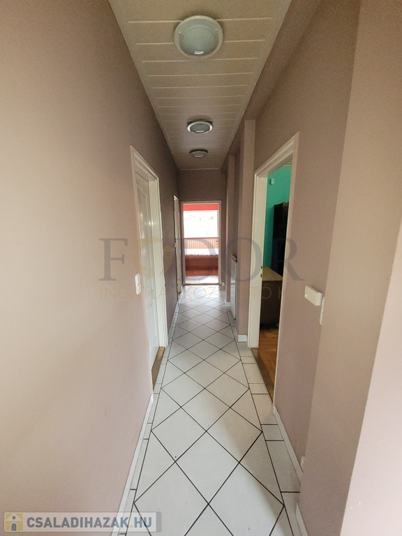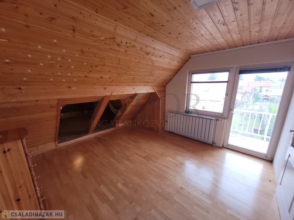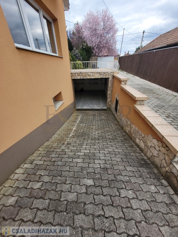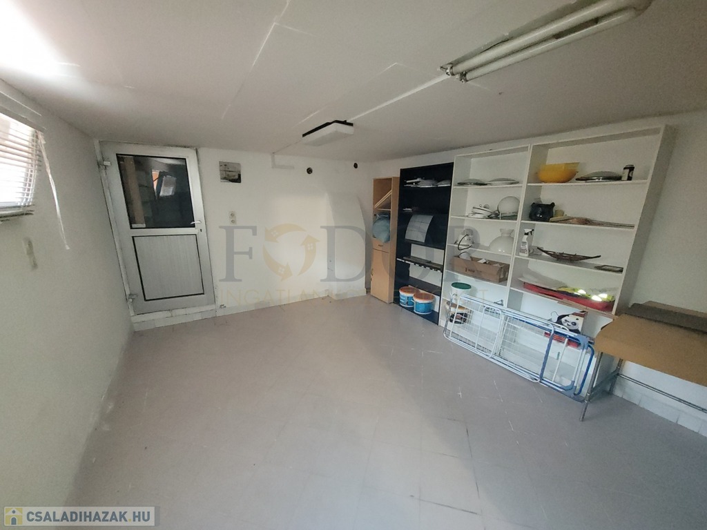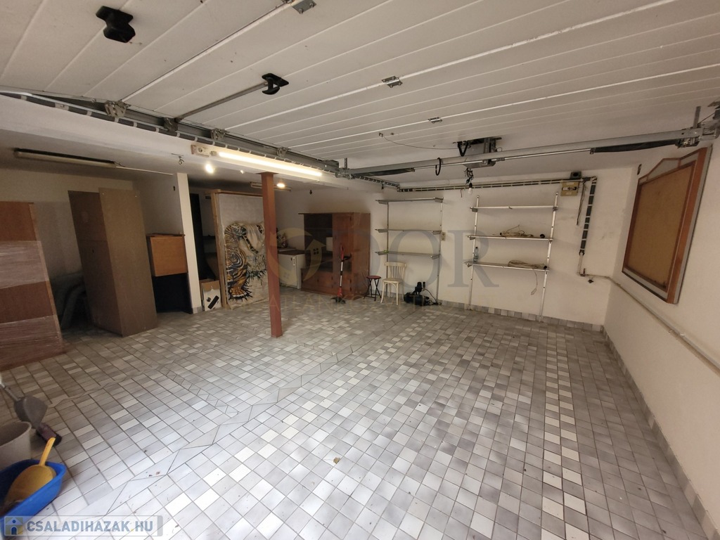 Az alsó szinten tágas, alápincézett garázs található, amely vállalkozási célra is ideális lehet. A földszintet napfényes nappali uralja, kandallóval és teraszkapcsolattal, mellette két hálószoba, kádas fürdőszoba, külön WC, valamint egy kényelmes konyha-étkező kapott helyet.