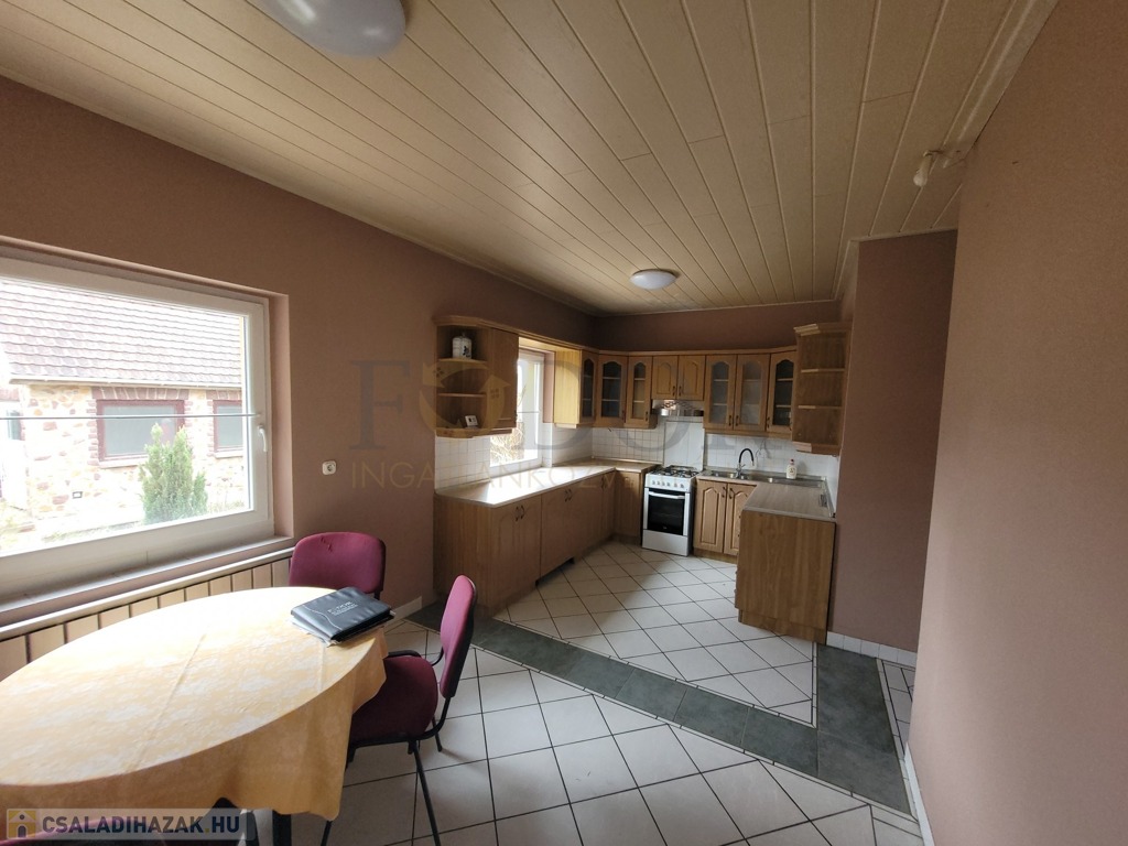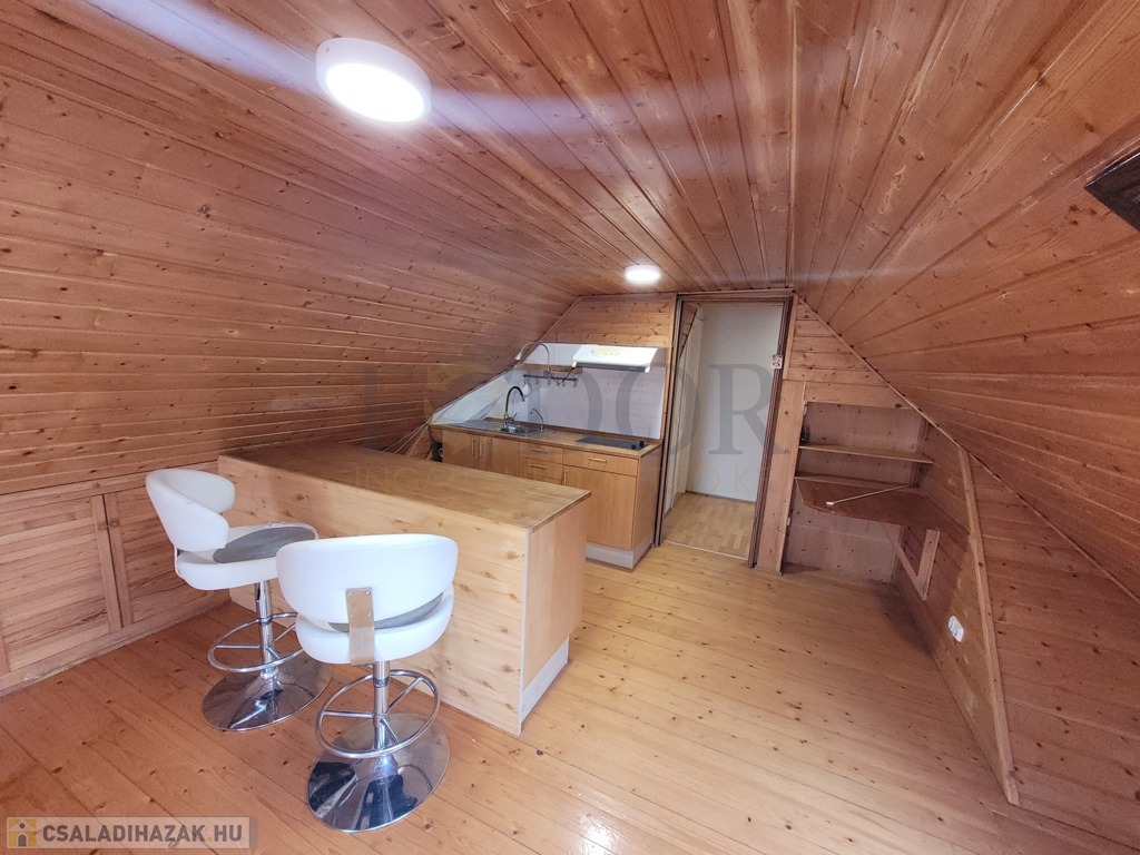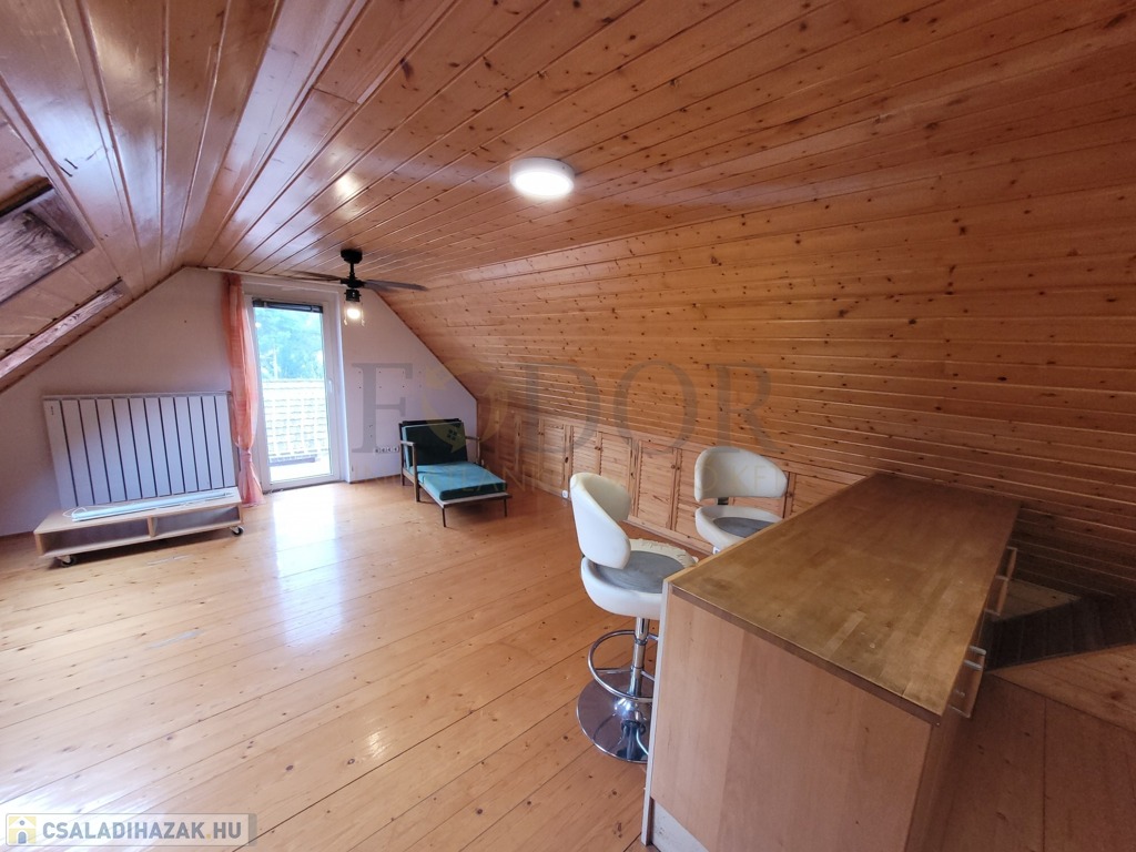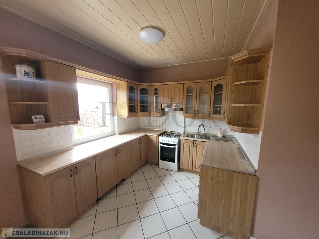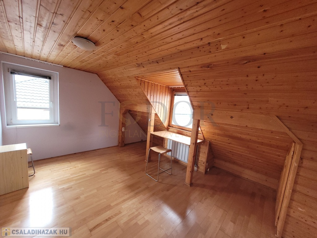 Az alsó szinten tágas, alápincézett garázs található, amely vállalkozási célra is ideális lehet. A földszintet napfényes nappali uralja, kandallóval és teraszkapcsolattal, mellette két hálószoba, kádas fürdőszoba, külön WC, valamint egy kényelmes konyha-étkező kapott helyet.