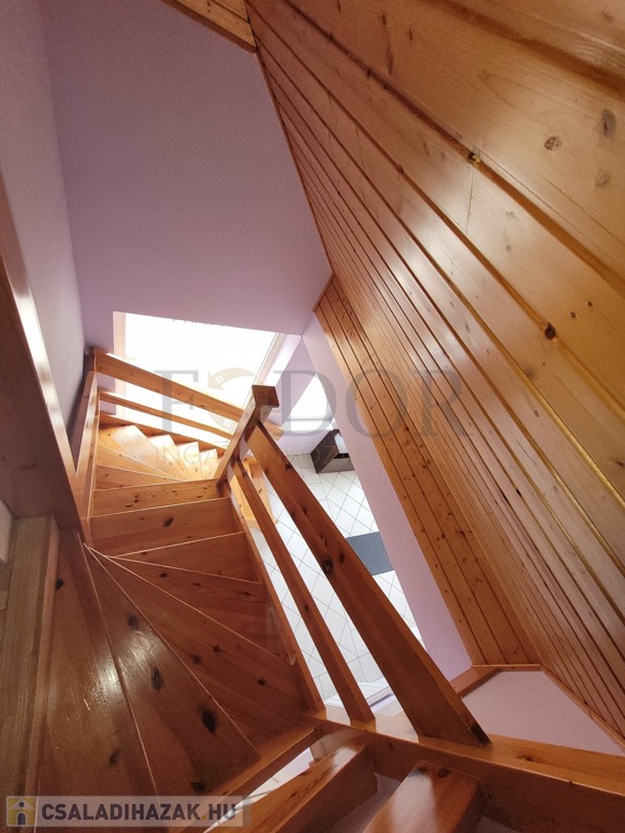 Az emeleti szinten újabb két hálószoba található, egyikük saját terasszal, valamint egy zuhanyzós fürdőszoba, külön WC-vel, és egy modern, amerikai stílusú konyhás nappali teszi teljessé az otthonos hangulatot.