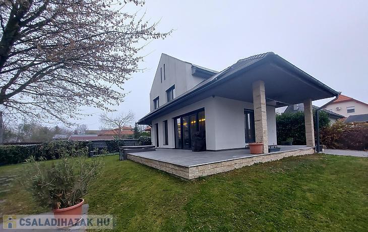 Modern, energiatakarékos ikerházfél eladó Felsőgöd–Neveleken, közvetlenül az erdő mellett.