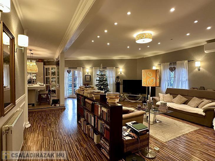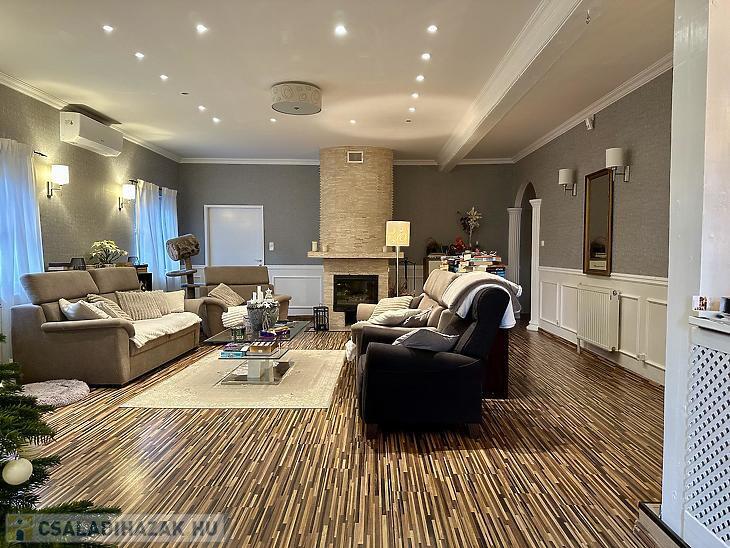 A szobák laminált parkettával, a többi helyiség járólappal vannak burkolva, a nyílászárók fa típusú termo üvegesek, a nappali és az egyik hálószoba klímával felszerelt.