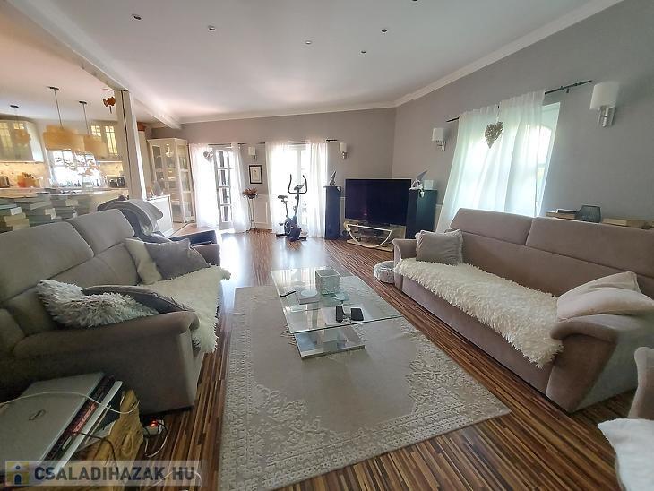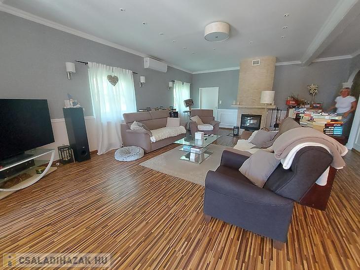 A szobák laminált parkettával, a többi helyiség járólappal vannak burkolva, a nyílászárók fa típusú termo üvegesek, a nappali és az egyik hálószoba klímával felszerelt.