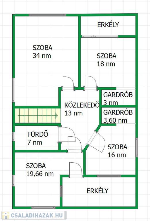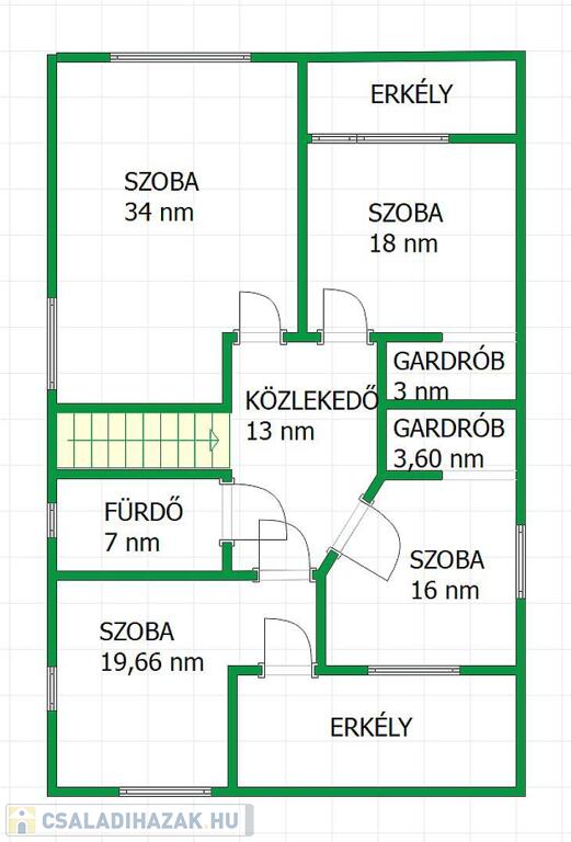 Az emeleti szinten négy hálószoba kapott helyet ,ezek közül kettő gardróbos , valamint egy fürdőszoba és két erkély, amelyek kellemes pihenést biztosítanak.