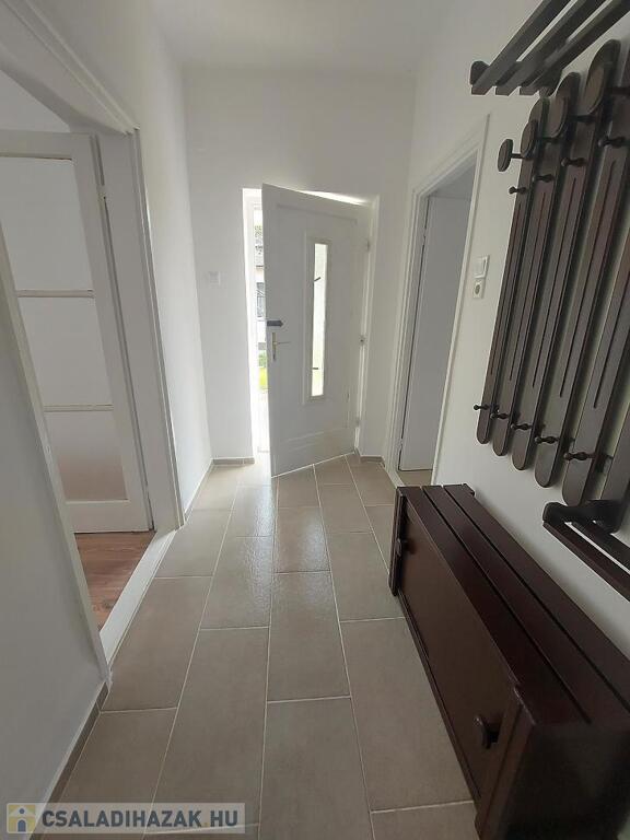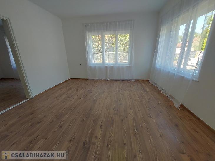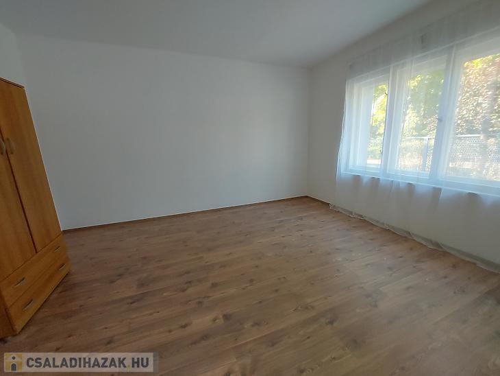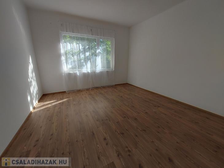 A szobák laminált parkettával burkoltak, a többi helyiség járólapos, a nyílászárók fa típusúak.