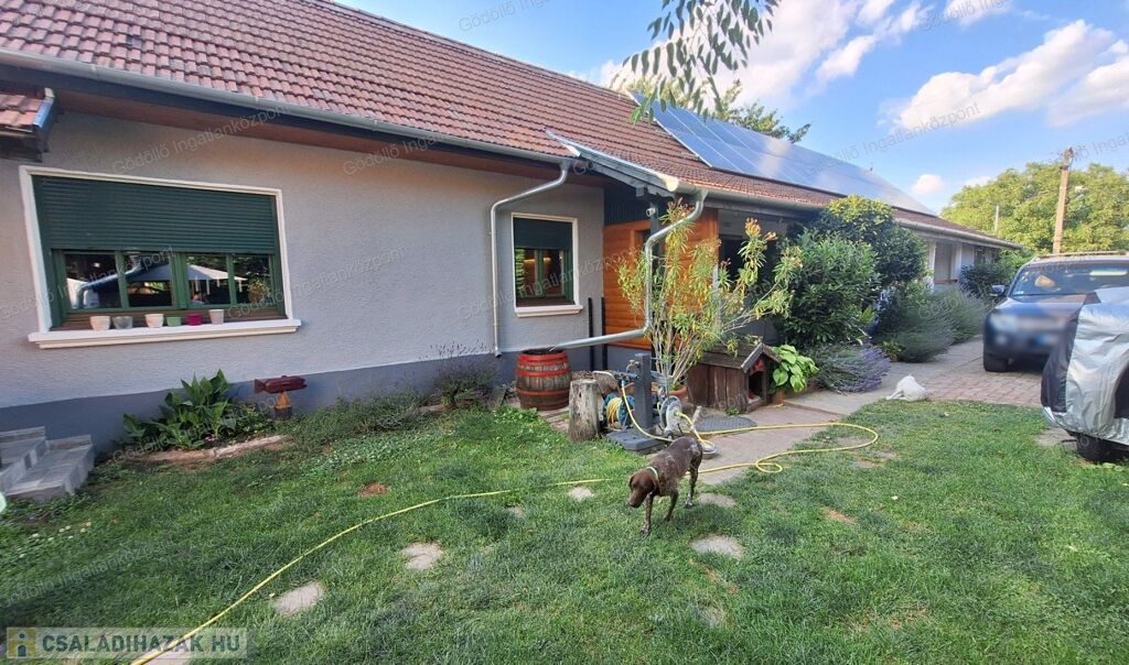 12KW-os napelemes rendszerrel (10 évig nagyon kedvező szaldós elszámolású), 3db hűtő-fűtő Gree klímával és riasztóval felszerelt. Melegvíz ellátásáról villanybojler, fűtéséről elektromos padlófűtés és 3db fatüzelésű cserépkályha gondoskodik.