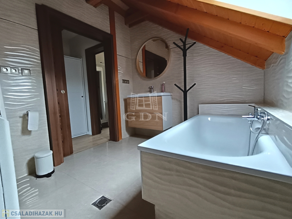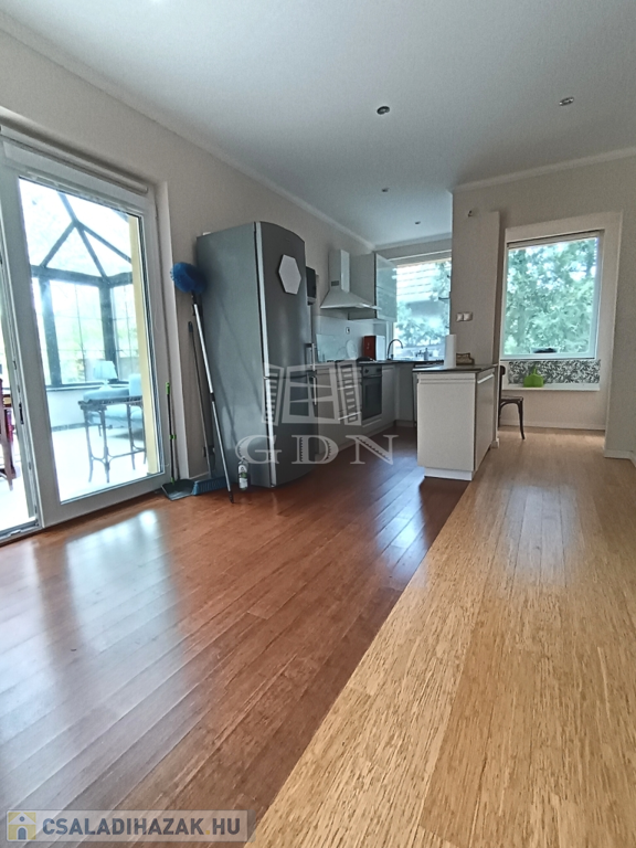A 178 négyzetméteren 4 egész szoba, egy fél szoba, 2 fürdőszoba, egy konyha, és egy előtér kapott helyet. Ezen túl a közel múltban egy gyönyörű 24 nm nagyságú téli kerttel bővült a ház, amelyből az egyedi tervezésű nagy méretű kertbe tudunk tovább haladni.