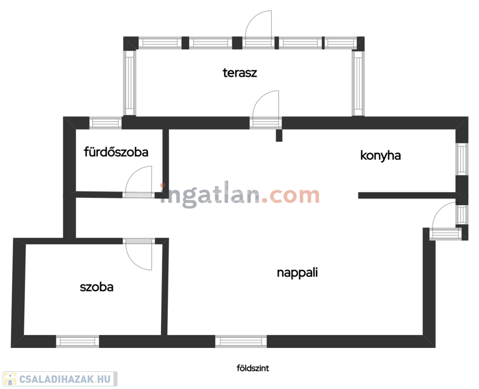 - Amerikai konyhás nappali, egy szoba, és egy fürdőszoba mosdóval.