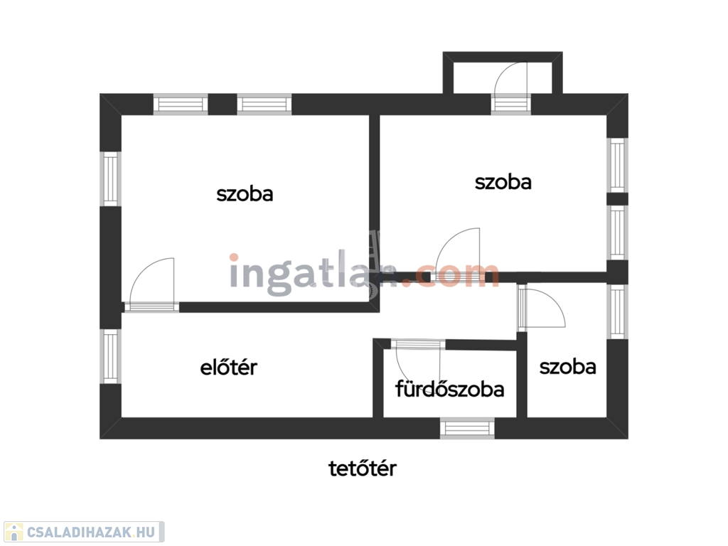 - 2 szoba, egy félszoba, és egy fürdőszoba mosdóval.