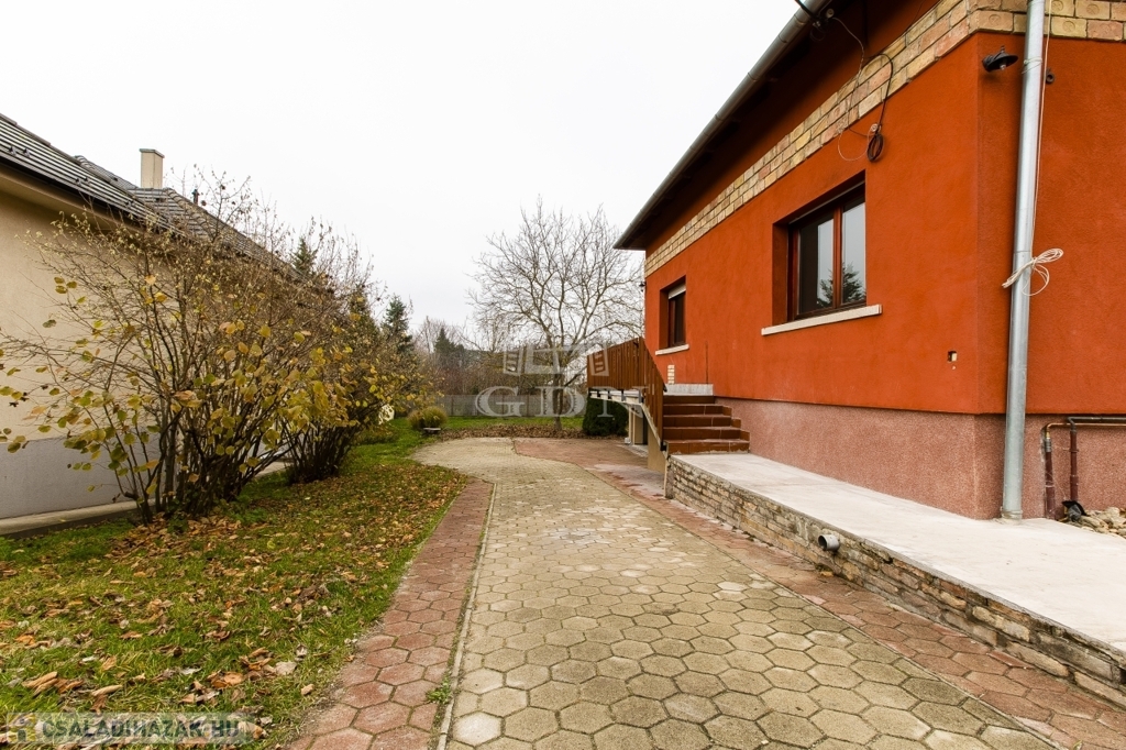 A főépület szuterén (48nm) és az alsó lakás (75 nm), 1980-as években épült, beton alapra 30-as tégla falazattal. 2009-ben ráépült beton födémmel és új tetővel egy külön bejáratú 56 nm-es lakás, illetve mellé épült egy 35 nm-es két állásos garázs elektromos garázskapuval, ami fölött 56 nm-es terasz került kialakításra. Ebben az időben kapott az épület körbe 7 cm dryvit szigetelést és új fa thermo nyílászárókat is.