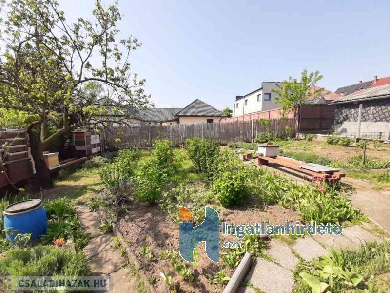 A telek hátsó részében kert van, a bejárati résznél pedig fedett gépkocsibeálló lett kiépítve.