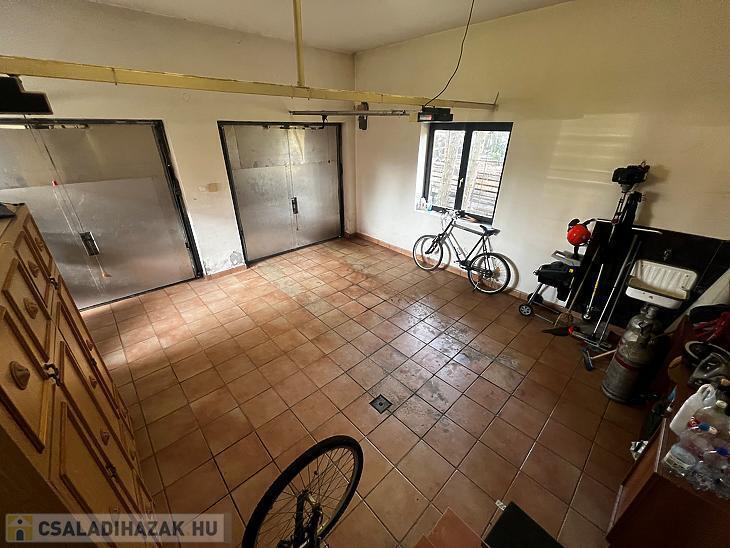 Nappali, konyha, étkező, közlekedő, wc, előszoba, 2 állásos garázs.