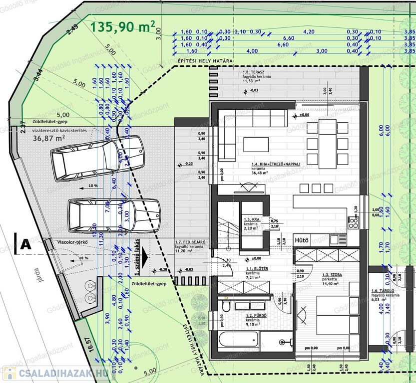 - kb.350nm-es telken helyezkedik el, parkoláshoz kocsibeálló kerül kialakításra,