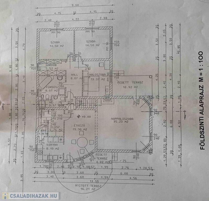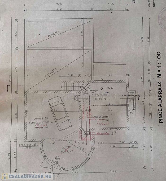Az épület 178nm hasznos alapterületű, 3 + 2 szobával, jó állapotú, téglából épült szerkezet.