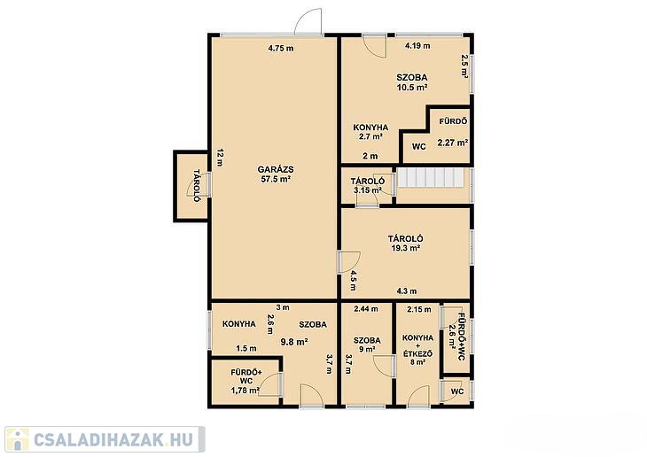 A szinten 3 külön bejáratú garzonlakás is kialakításra került.