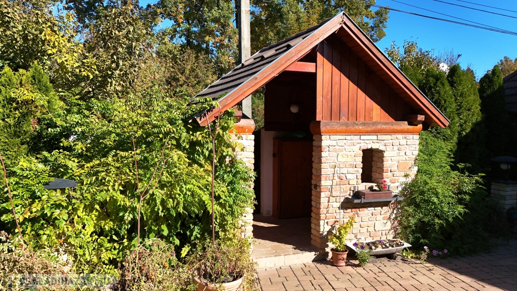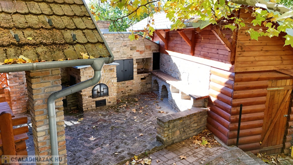A tégla, a kőburkolatok és a fa természetes összhangja által teremtett csodálatos harmónia fogadja az utcáról érkezőket. Az épület elrendezése jól átgondolt, minden igényt kielégítő, az apró részletek (a kerti falikutaktól kezdve, a konyhai fűszertartón és karnisokon át, a nyári konyha kialakításáig) fokozzák az egész ingatlan varázsát!