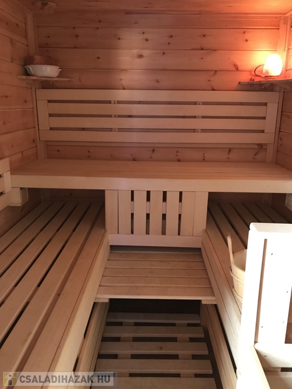A ház a földszinten nettó 175 m2, az emeleten pedig nettó 115 m2 (bruttó 170 m2) hasznos lakóterületű: 2 nappali, 6 hálószoba, 4 fürdőszoba és egy étkező található meg benne az egyéb kiszolgáló helyiségek mellett. A főbejáraton belépve az előszobába jutunk, ahonnan bal kéz felé nyílik a WC és mellette egy gardrób helyiség. Tovább haladva a földszinti rész központjába érkezünk meg, ahonnan balra induló közlekedőn át két, külön bejáratú hálószobához és két meseszép fürdőszobához érkezünk el. Az előszobából jobbra indulva egy csodálatos hangulatú térbe jutunk, ahol az egyedi kialakítású és gépészetű konyha, az étkező és a nappali kapott helyet. A meleg, otthonos atmoszférát a nappali sarkában elhelyezett egyedi, vízteres kandalló tovább emeli. A konyhából nyílik egy nagyon praktikus kialakítású és berendezésű 6 m2-es kamra. A nappaliból nyílik továbbá egy pihenő rész zuhanyzóval, mosdóval és szaunával. Emellett található a két állású, fűtött garázs 36 m2-en, ami egy ajtón át belülről is elérhető. A hátsó kert nyugalmát az étkezőből nyíló ajtón keresztül érhetjük el leggyorsabban, ahol egy gyönyörű, 47 m2-es terasz kapott helyet.