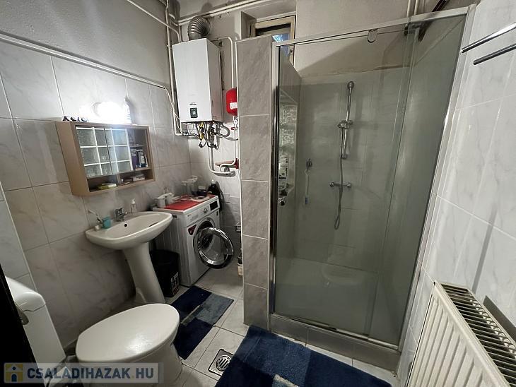 3 szoba, étkezős konyha, kamra, zuhanyzós fürdőszoba + wc, közlekedő.