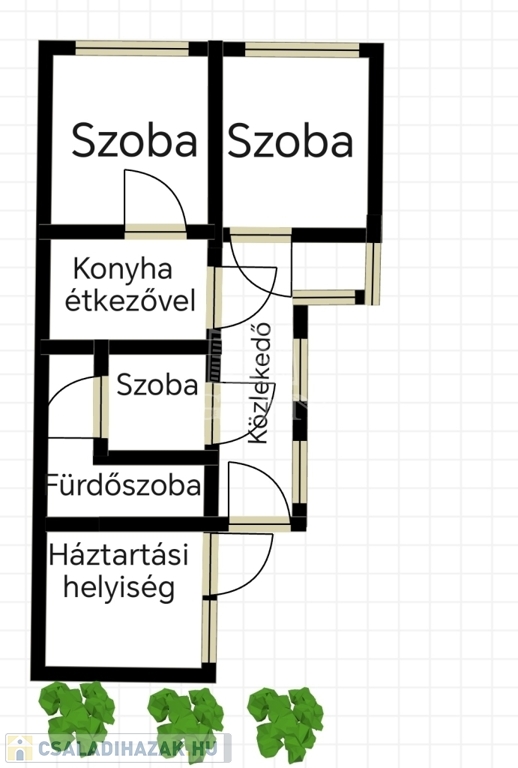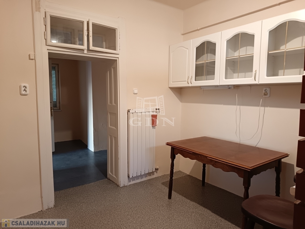Felosztása: közlekedő, fürdőszoba, 2 különálló szoba, egy szoba, amely hallként funkcionál jelenleg (nincs rajta ablak, azonban kisebb átalakítással, könnyedén ablakossá alakítható), egy nagy méretű konyha, étkezővel, és egy közel 12 nm nagyságú háztartási helyiség.
