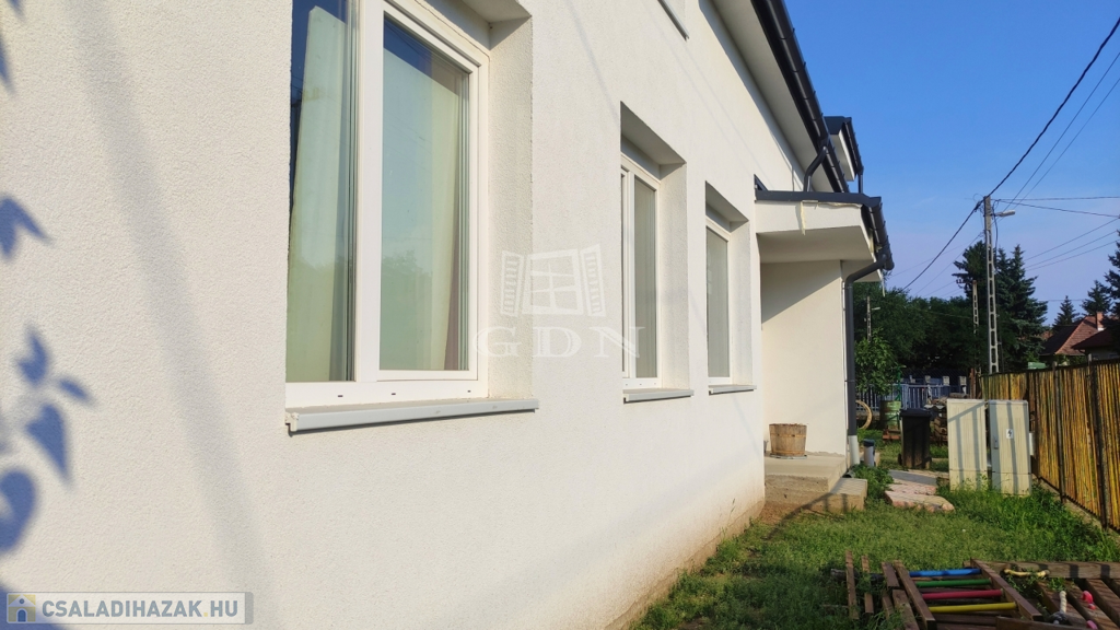 Az ingatlan 2023-ban épült, beton alapra, 30-as Phorotherm NF téglából, beton födémmel, antracit színű betoncserép fedéssel. Falazat 15 cm dryvit, tető 25 cm gyapotos szigetelést kapott hó tükrös és párazáró fóliával. Nyílászárók körbe műanyag 3 rétegű üvegezéssel ellátott 5 légkamrások.