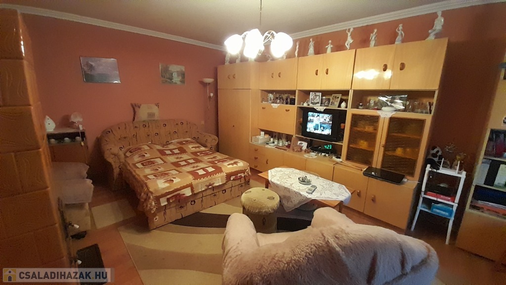 Az ingatlan 1984-ben épült, azóta a jelenlegi tulajdonosok gondosan karbantartják. A ház kőből épült, palával fedett a tetőszerkezete, nyílászárói eredeti fa anyagból készültek melyeket nem cserélték ki, mivel kifogástalan állapotban vannak. Szobák falai festettek. 50-60-cm válaszfalakkal rendelkezik, illetve a főfalak elérik a 80 cm vastagságot. Az első szoba aljzata jelenleg linóleum borítja, a második szobát laminált padló, illetve a konyhát, előteret és a fürdőszobát járólap. A szobákban beépített cserépkályha van, ami használható, de gázkonvektoros fűtési lehetőségünk is adott minden helyiségben. A fürdőszoba 2 éve lett teljes körűen felújítva, ebben beletartozik a vízhálózat csere illetve a falak csempézése, a sarokkád beépítése is. A konyha és az étkező egy helyiségben található, innen nyílik a spájz. Az ingatlan részben bútorozottan eladó.