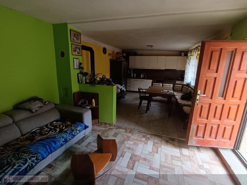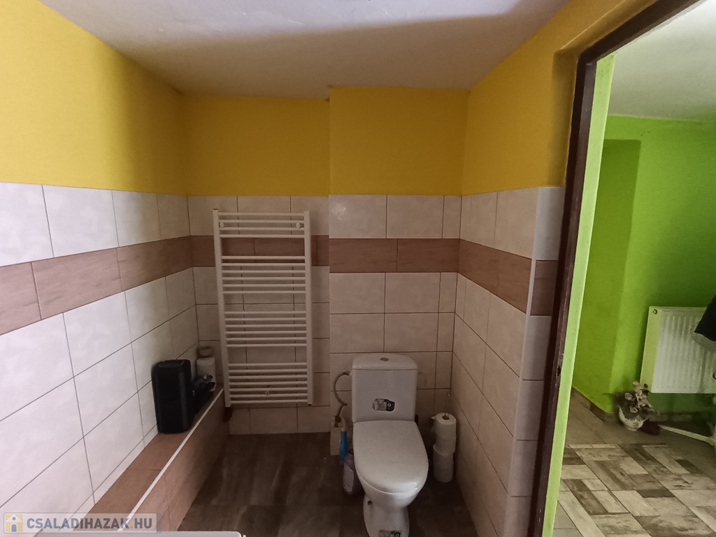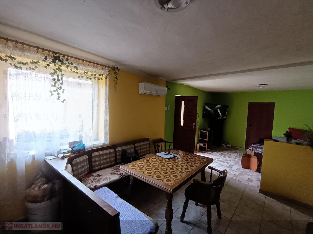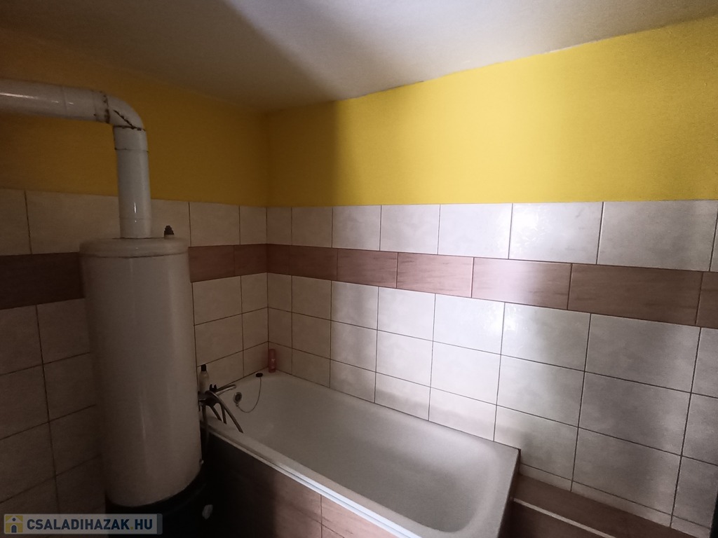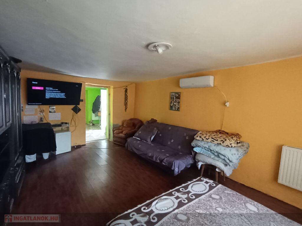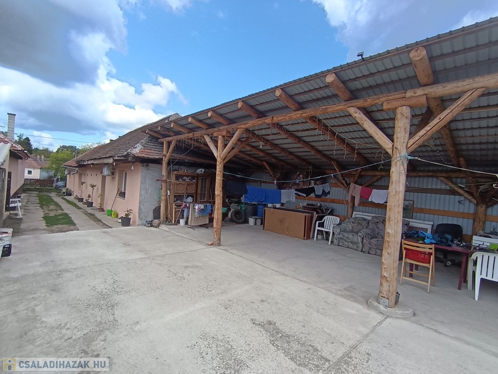 A második házrész egy szobát, konyhát és egy felújítást igénylő 10 nm- es helyiség található. A ház hátsó udvara betonozott, kb 10 méter hosszú 6 méterszéles fedett terasz lettaz éven kialakítva, mely akár autóbeállóként is szolgálhatja igényünket.