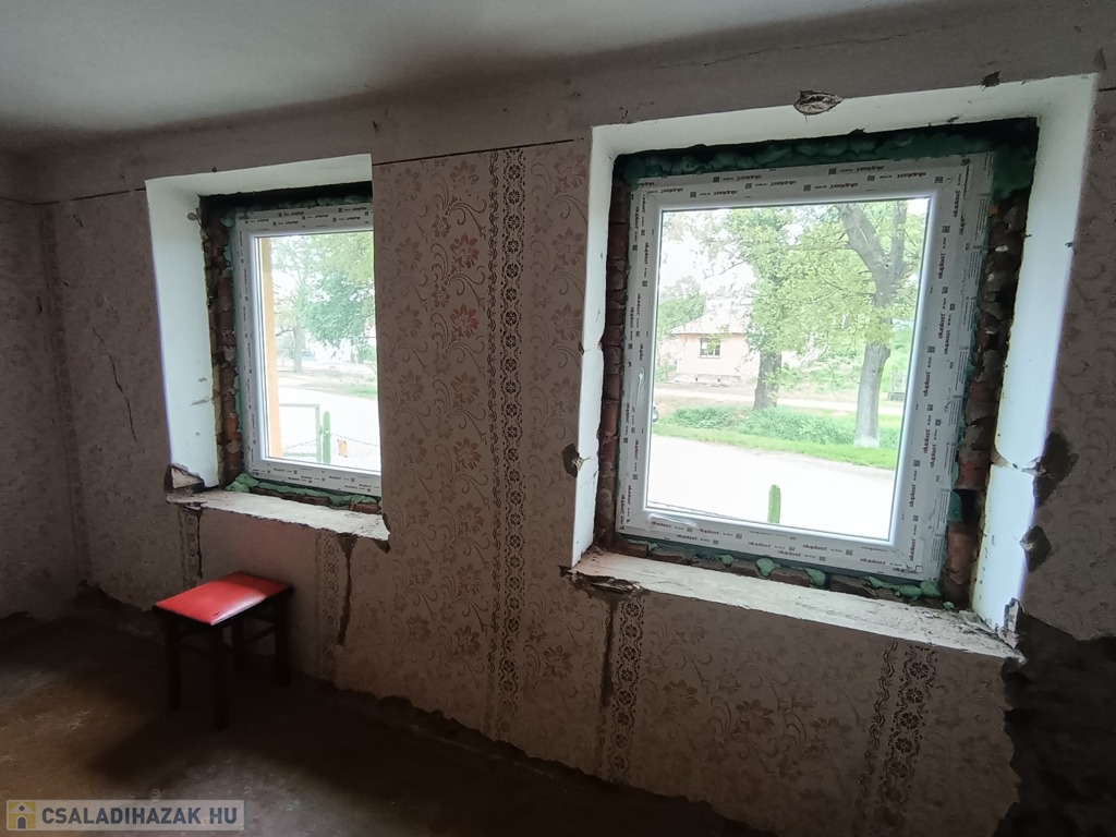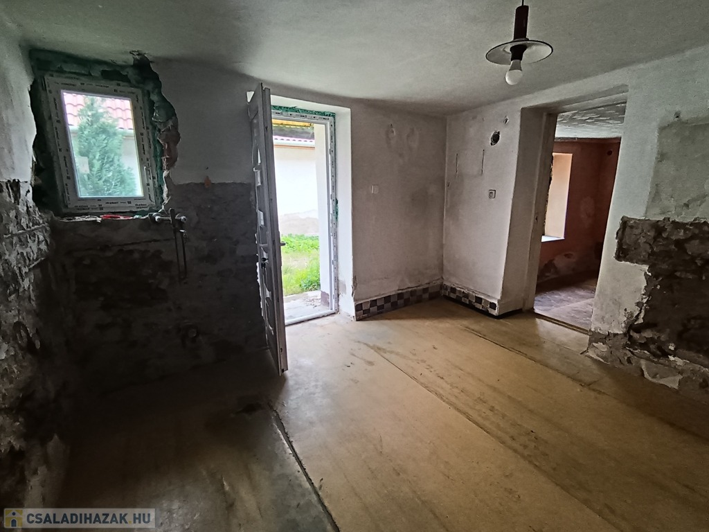 Amit érdemes tudni a házról! A háznak a belső felújítását a jelenlegi tulajdonos elkezdte, mint például a nyílászárok cseréje megtörtént, a belső falazattokat a szükséges helyen eltávolította, így legalább látjuk mi legyen a további lépésünk a felújításunk során, mivel saját kedvünk szerint alakíthatjuk a házat. A helyiségek aljzata betonozott. A fűtésről egy beépített cserépkályha gondoskodik, illetve kandalló. A fürdőszobában a csempe falburkolat, illetve a hidegburkolat is le lett szedve. A ház villany, víz, szennyvízhálózat közművel rendelkezik. Gázcsonk a telken belül!