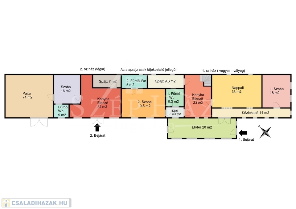 Két külön főbejárattal rendelkezik akár két külön lakásként is használható.