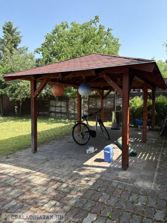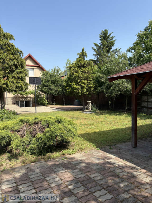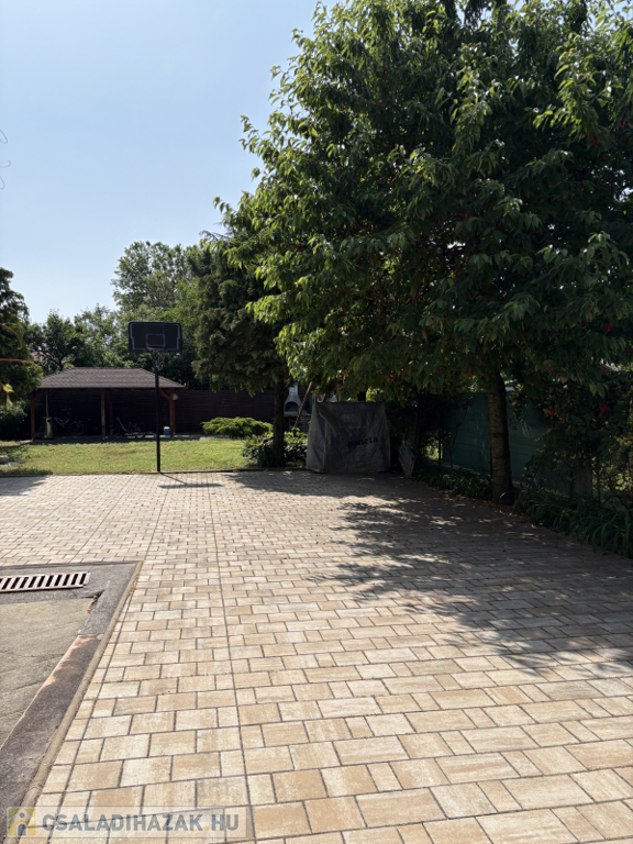 A telek 541 nm-es, ami minimum 4 autónak biztosít kényelmes parkolást a térkövezett udvarban. A kert többi részén medencének kialakított burkolt terület, egy szaletli és füves rész lett kialakítva.