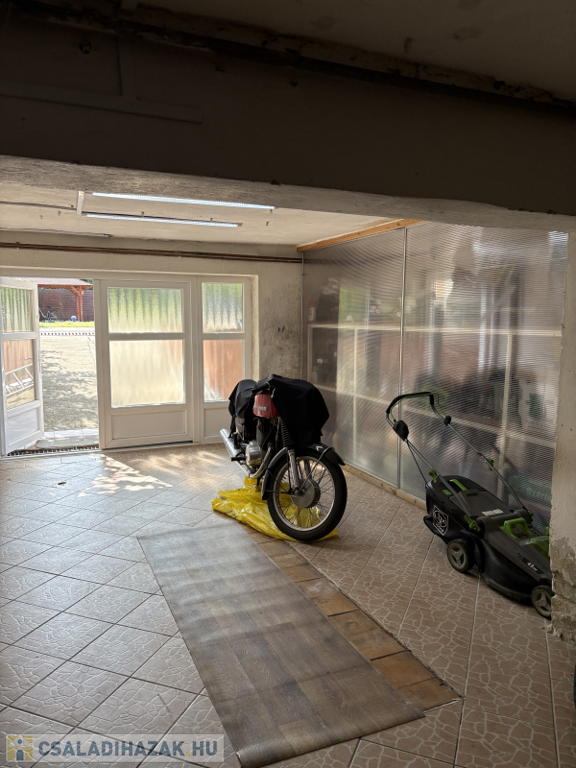 -A ház 1990-ben épült 30-as téglából, rajta 10 cm dryvit szigeteléssel. Ablakok műanyagok, redőnnyel és szúnyoghálóval felszerelve. Tetőszerkezet fából készült cserép fedéssel.