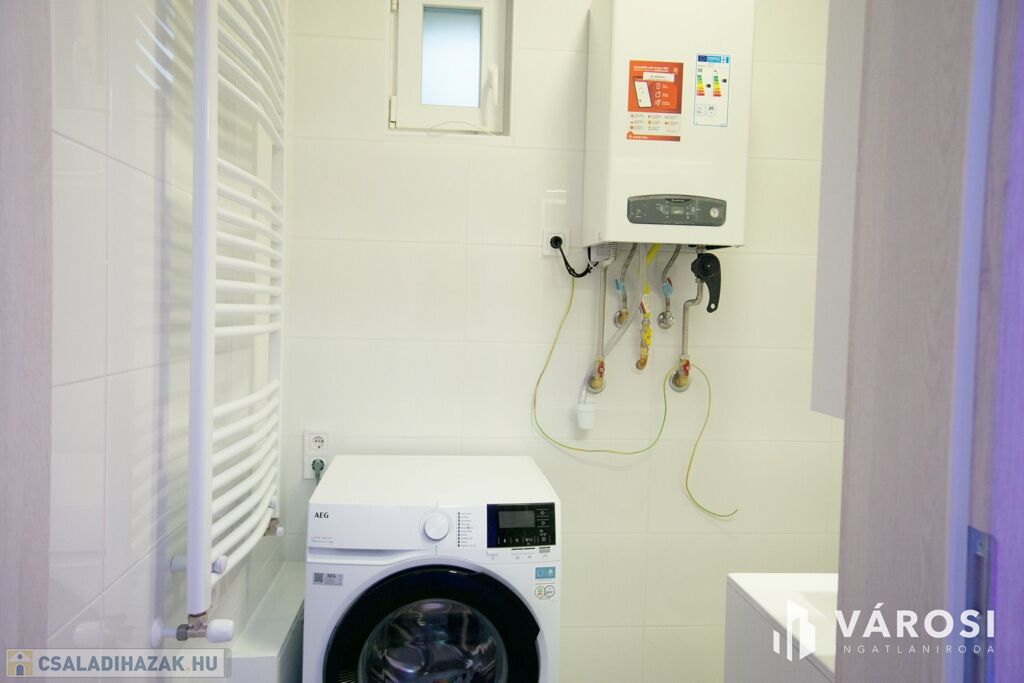- Mindkét lakás külön 24 kW-os kondenzációs kazánról üzemel, ez biztosítja a fűtést és melegvizet.