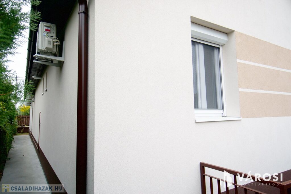 - Modern kiegészítők: Redőnyök, szúnyoghálóval ellátott ablakok, klíma, riasztó kiépítve, háromfázisú áram.