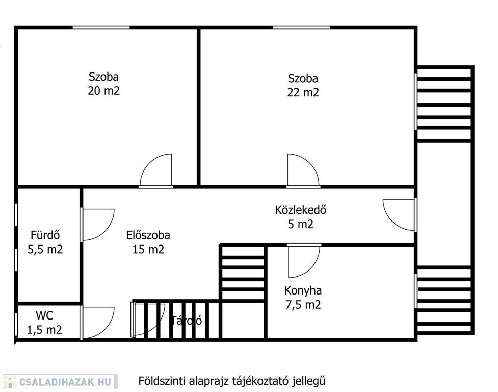 Fsz: 80 m2 fedett belépőről a közlekedőbe vezet, 2 szoba, előtér-lépcsőház,a lépcső alatt tároló,konyha, fürdő,külön WC.