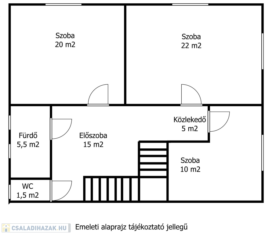 Emelet: 80 m2 előtér, 3 szoba, fürdő, külön WC,lépcsőház.