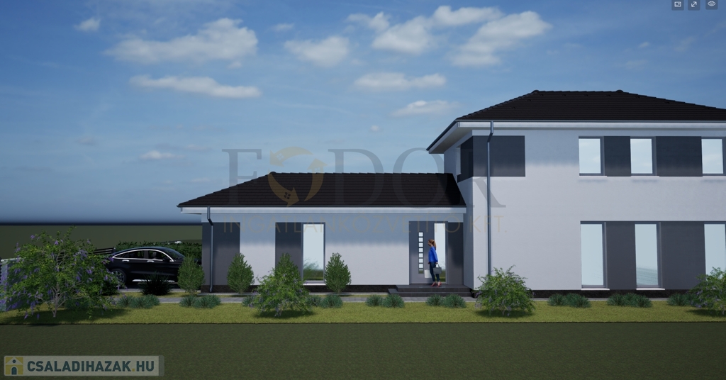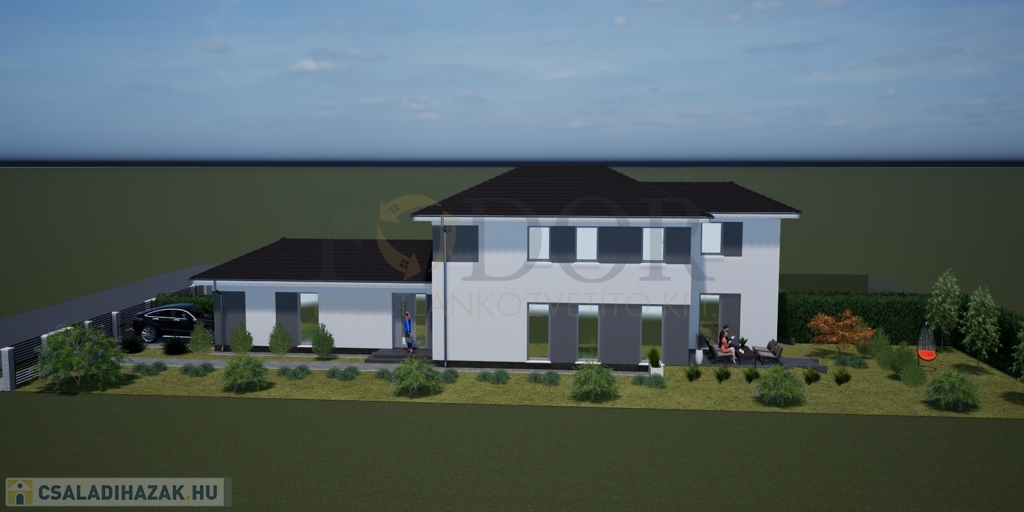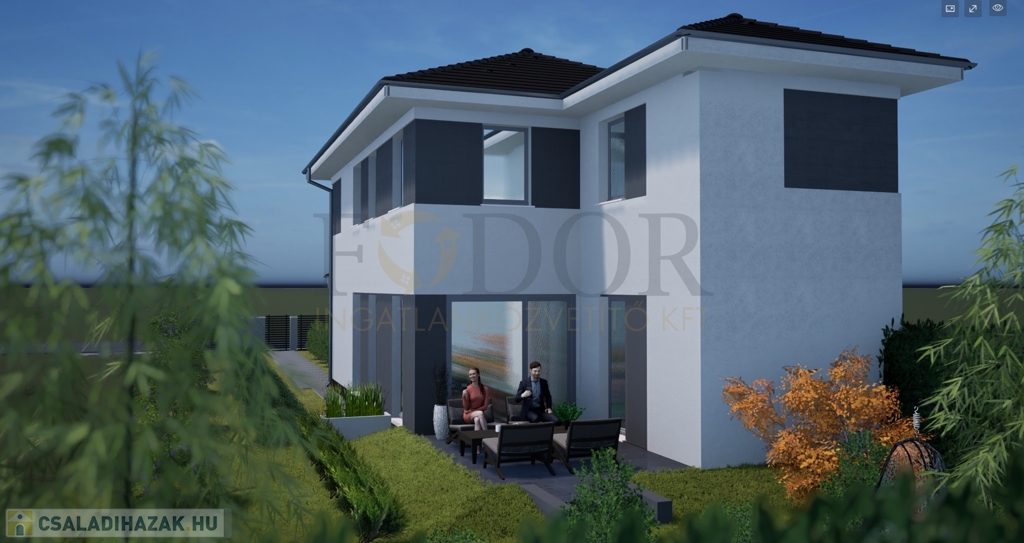 A ház prémium műszaki tartalommal, tágas terekkel, nagy kerttel és igazi családi otthonra tervezett elrendezéssel készül.