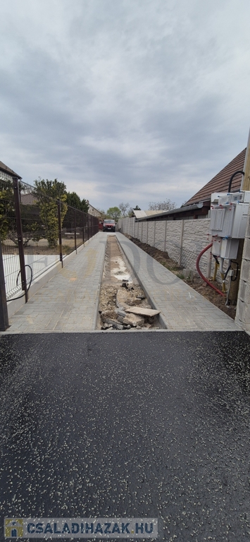Az udvar rendezett, az utcától a fedett autóbeállóig viacolor burkolat került kialakításra, amely kényelmes parkolást biztosít.