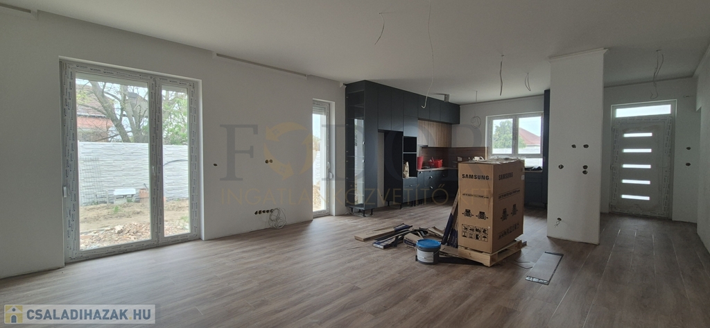 Eladásra kínálunk Gyál csendes, nyugodt részén, egy szinte azonnal költözhető (2026 május), 490 m²-es telken elhelyezkedő, 108m2 hasznos lakóterületű , 2026-ban épült, újépítésű, tégla szerkezetű családi házat. Az ingatlan amerikai konyhás nappalival + 3 külön nyíló szobával rendelkezik, az egyedileg készített konyhabútor gépekkel és a gardróbban lévő beépített bútorokkal együtt a vételár részét képezik. A praktikus elrendezésnek köszönhetően a nappaliból nyíló háló saját gardróbbal és külön fürdőszobával biztosít kényelmet és privát teret. A fedett beálló a ház mellett 16m2.