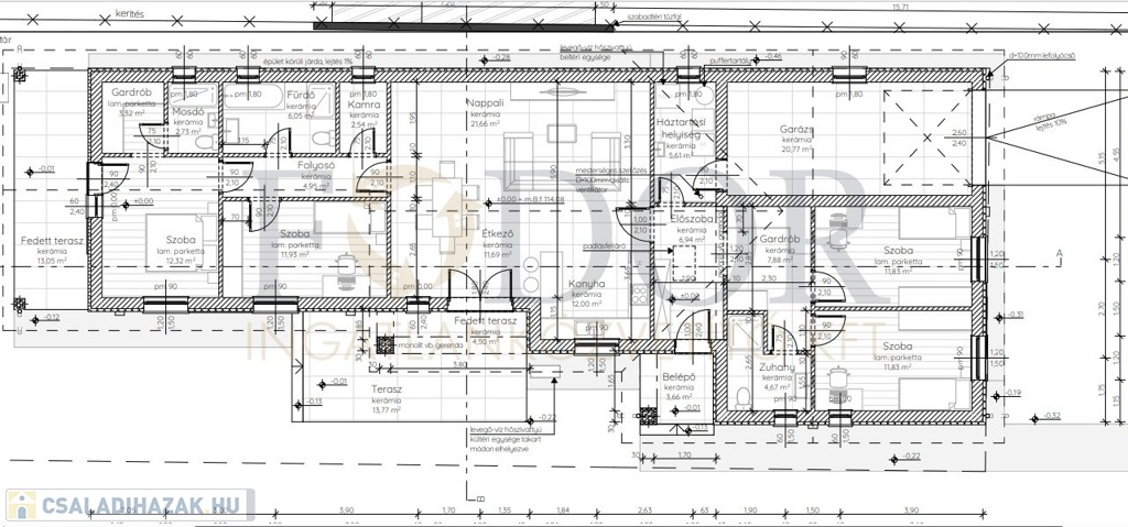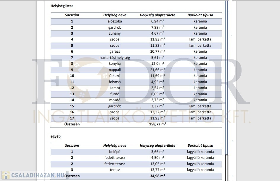700 m²-es telek, 158,72 m² összterület (ebből 138 m² hasznos lakótér + 20,77 m² garázs)