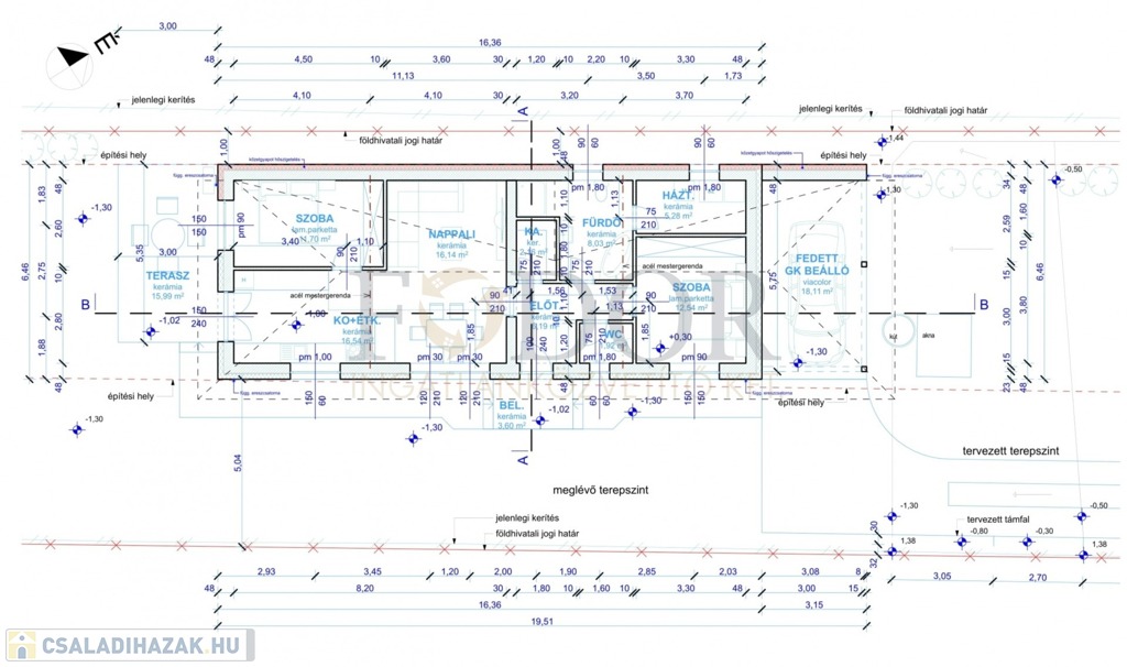 • Tartozik hozzá fedett gépkocsibeálló 19,39 m² és terasz 16,36m²