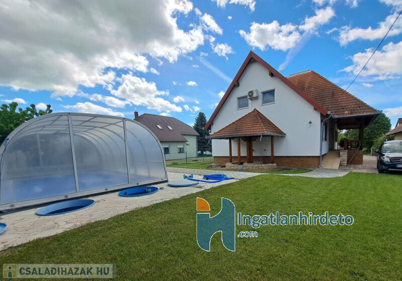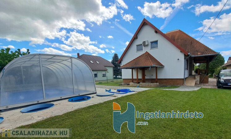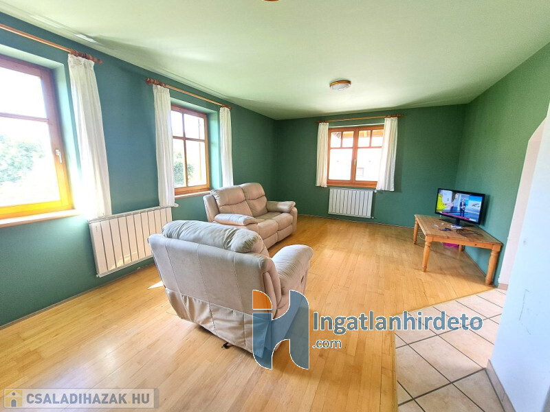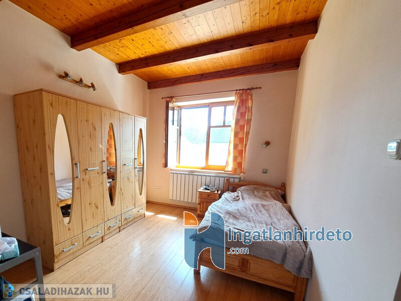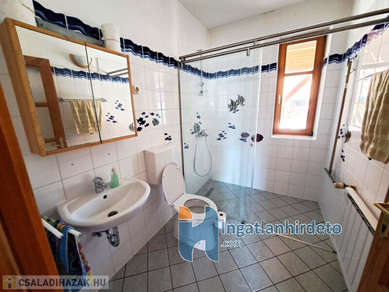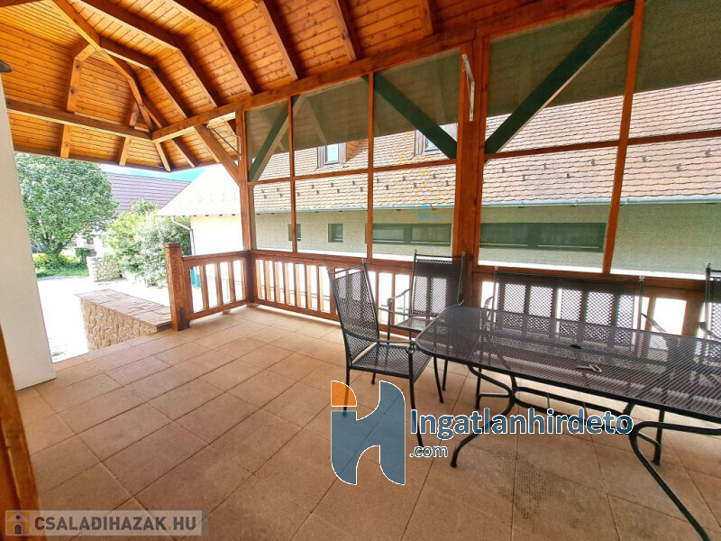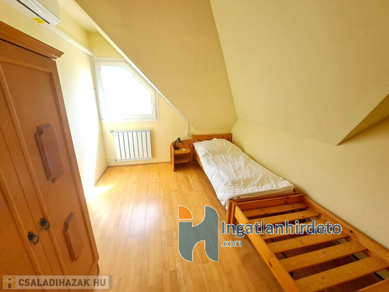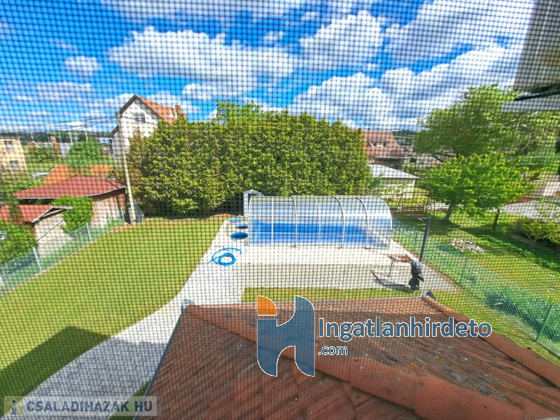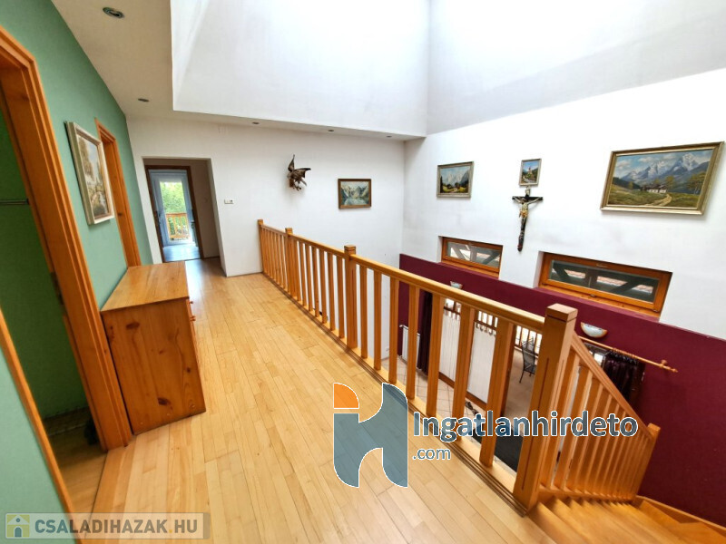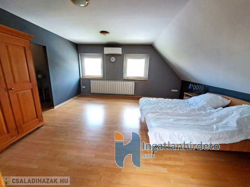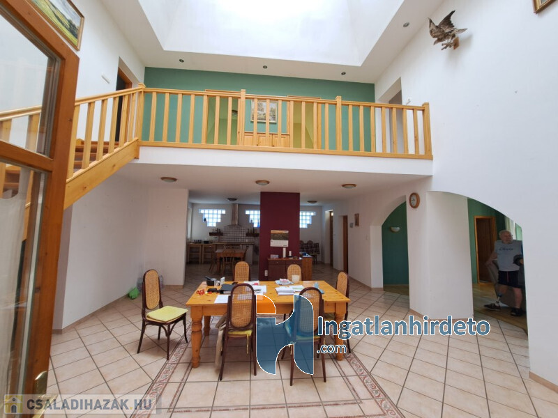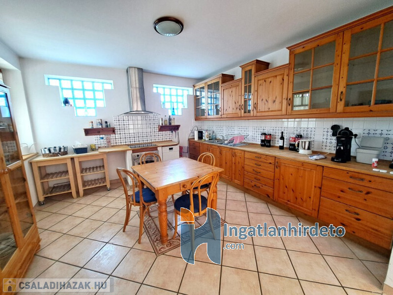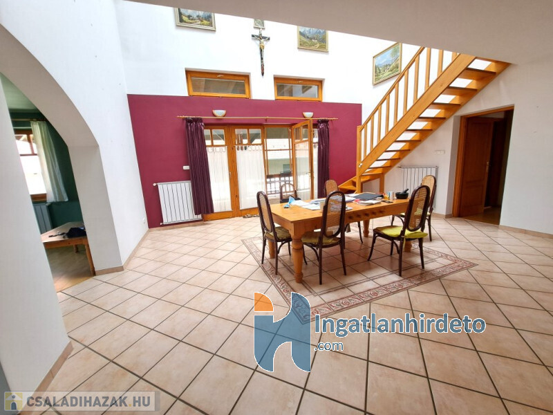 Elhelyezkedése: Belterület Tájolása: Dél-nyugai tájolású Állapota: Kiváló Komfort besorolása: összkomfortos Építési éve: 2006 Alapterülete: 297 m2 Telekterülete: 719 m2 Szobák száma: 8 + 4 szoba Felújított: Felújított Felújítás éve: 2022 Felújítás során elvégzett munkák: Festés, Egyéb Közművek: Gáz, Víz, Villany, Csatorna Gázellátás: Vezetékes Vízellátás: Vezetékes víz Melegvíz-ellátás: Gázkazán Áramellátás: 230V/380 V Fűtés módja: Gáz Fűtés típusa: Cirkó Homlokzat állapot: Jó Építési mód: Tégla Tető formája: Magas Tető anyaga: Cserép Parkolási lehetőség: Garázsban Kilátás: Utcafronti kilátás, Udvari kilátás Jellemzői: Két bejárat, Redőny, Fűtött garázs, Légkondicionáló, Udvari terasz, Beépített konyhabútor, Kert, Kerítés, Medence, Térkő Energetikai besorolás: B Egyéb jellemzők: Erkély, Terasz Tv, Internet: Internet Közelben: Orvosi rendelő, Bolt, Gyógyszertár, Vendéglátó egység, Reptér, Autópálya Terhelések: Tehermentes ingatlan Eladásra vonatkozó információk: Az ár tartalmazza a teljes berendezést, Azonnal beköltözhető