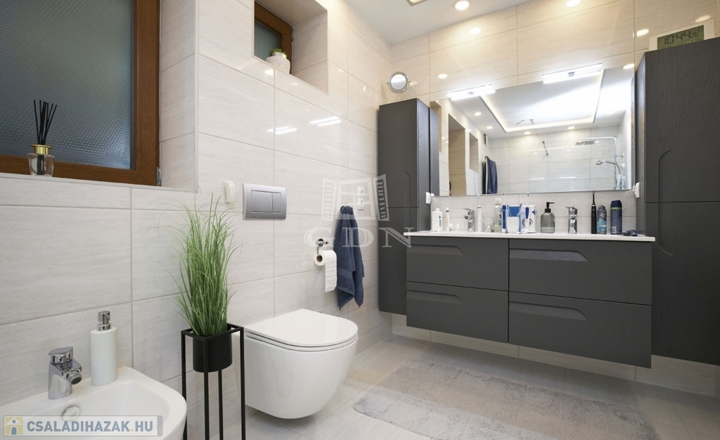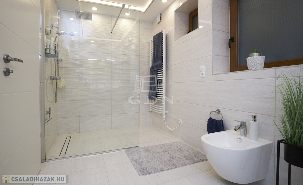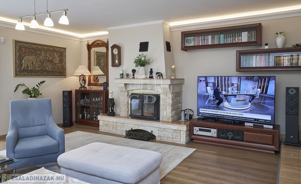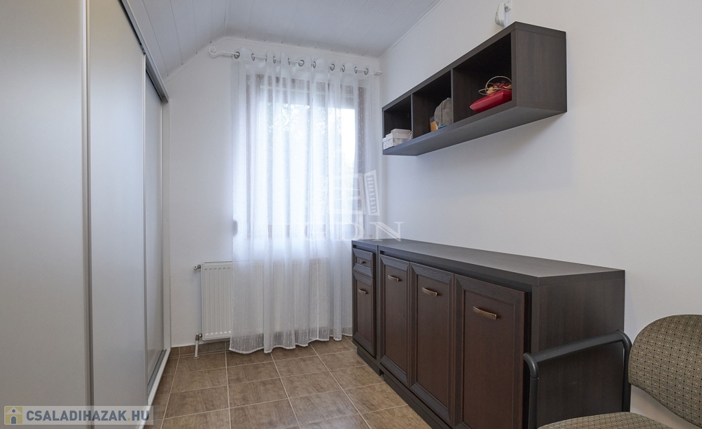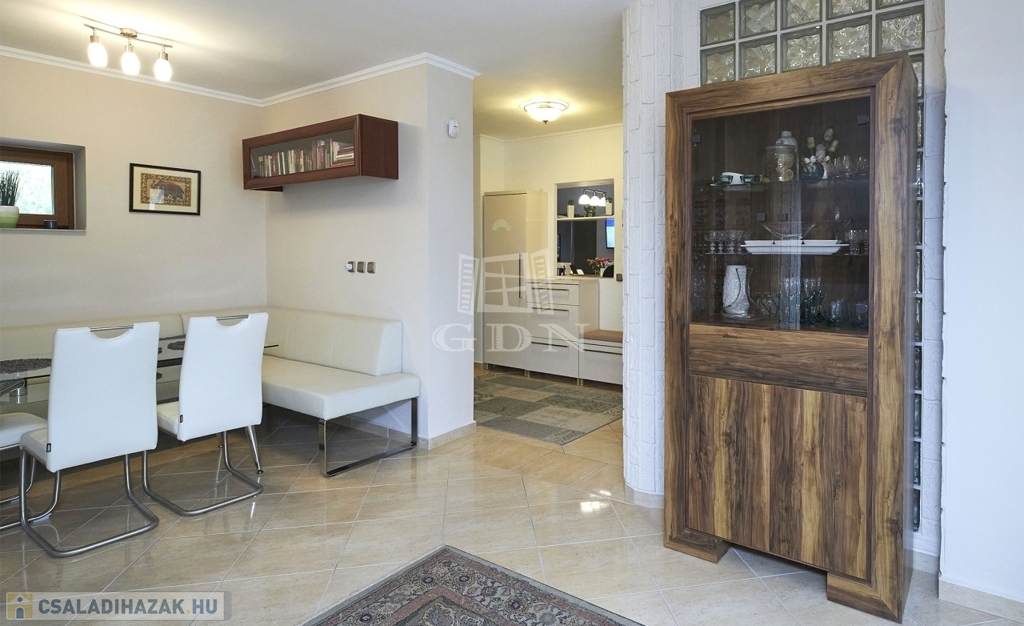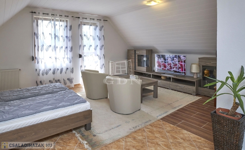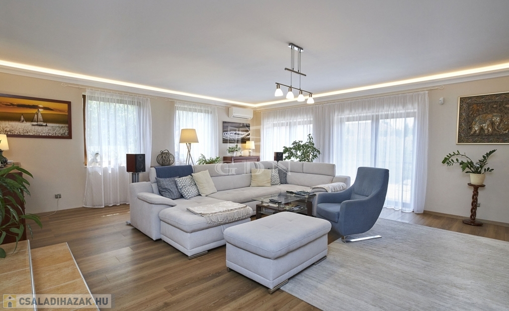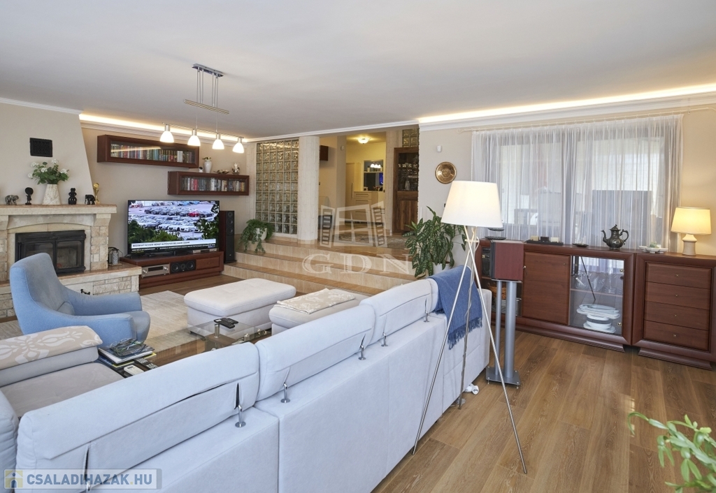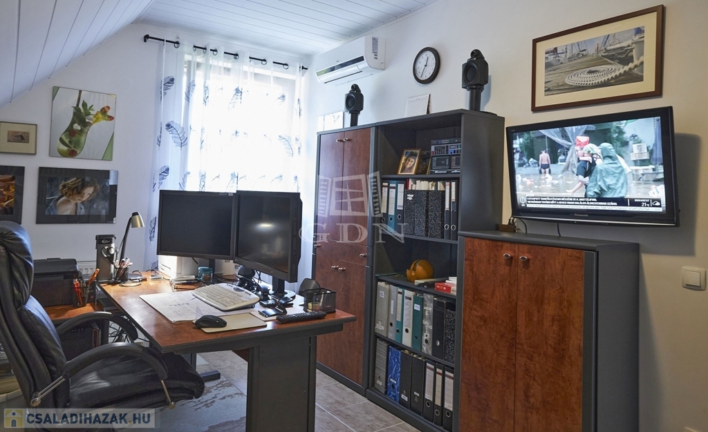 Az ingatlan kétszintes, részben alápincézett. Telken található egy 35m2-es dupla garázs, melyben az elektromos autótöltő kiépített.