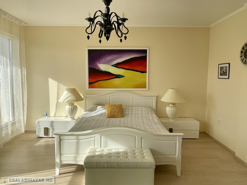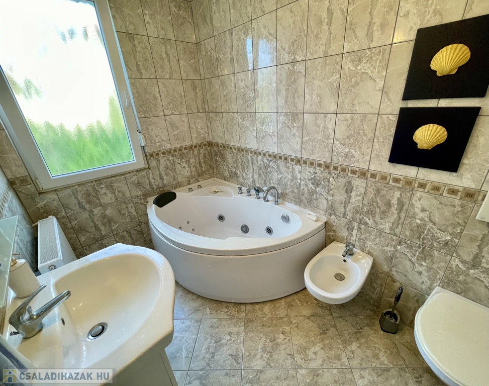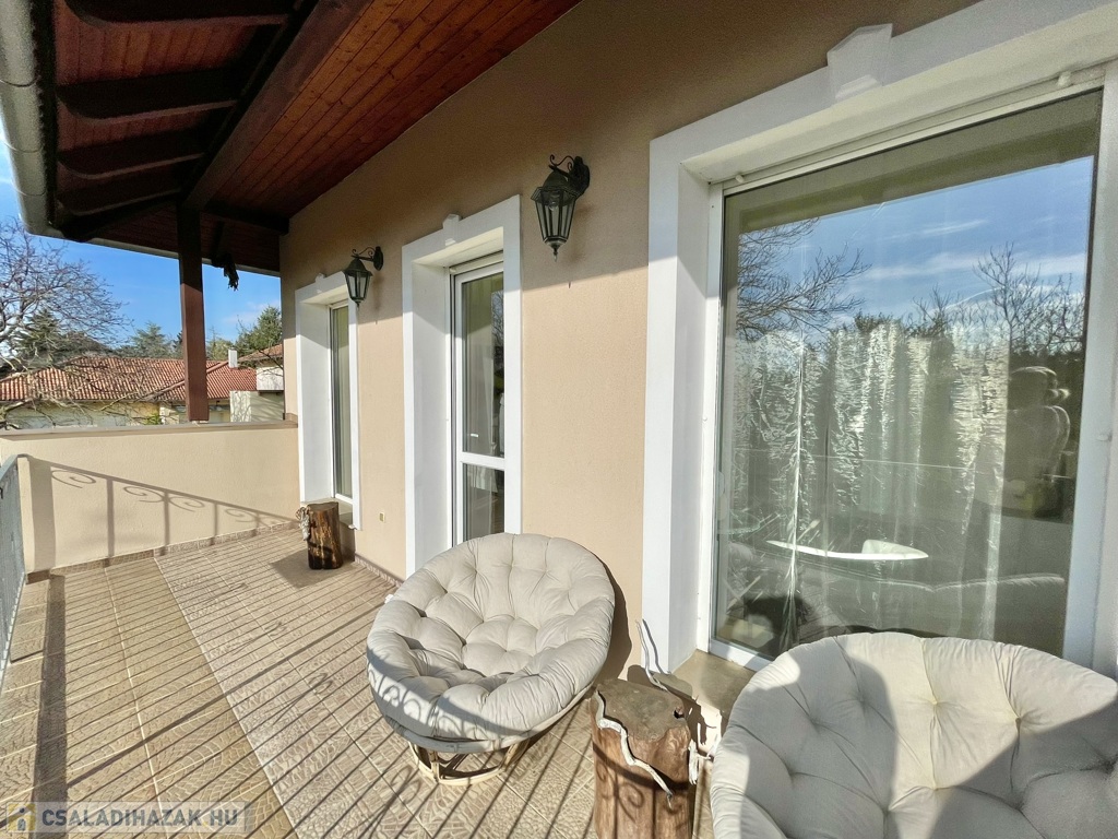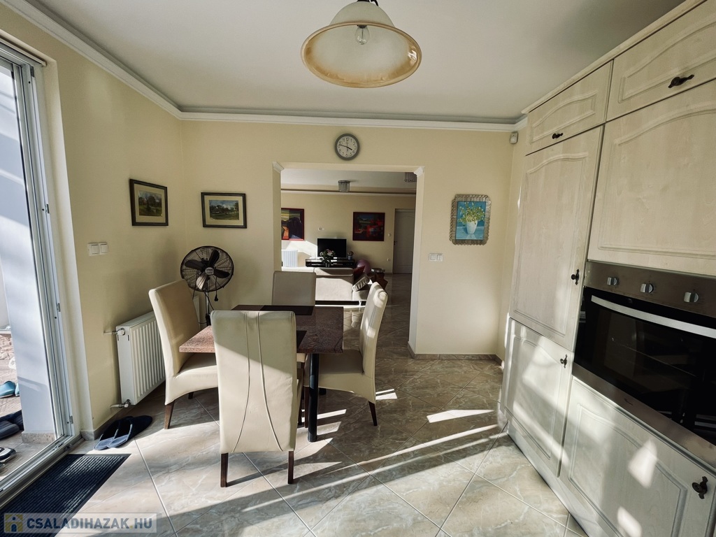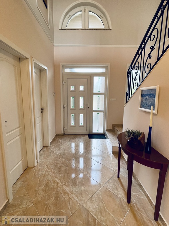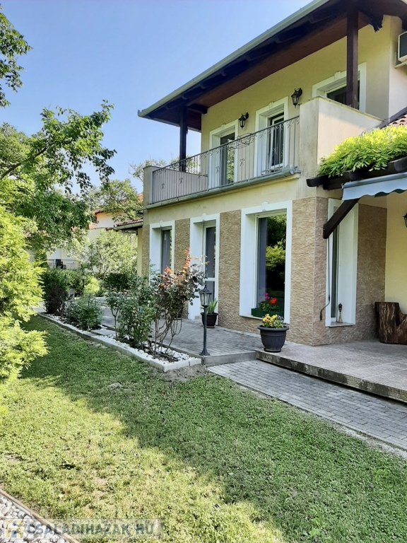 Gyenesdiáson a Balatont parttól ötszáz méterre, csendes zsákutcában kínálunk eladásra egy 729 m2-es telken egy kétszintes 250 m2-es elegáns családi házat! Tulajdoni lapon kivett lakóház és udvarként szerepel. Az épület 2014-ben épült, téglaépítésű / 10 cm-es külső szigetelés / és cseréptetővel fedett. Az épület nyílászárói szigetelt műanyagok, redőnnyel és szúnyoghálóval szereltek. A fűtésről és melegvíz ellátásról kondenzációs gázkazán gondoskodik. A bejövő víz tisztaságát vízlágyító berendezés biztosítja. Az épület felső szintje hűtő-fűtő klímákkal felszerelt! A hálószobák minőségi laminált padlóval a többi helyiség igényes kerámia lapokkal burkoltak. Az udvarra és a garázsba egyaránt távirányítóval vezérelt kapun és garázsajtón lehet bejutni. Az épület riasztóberendezéssel is felszerelt. Az udvar állandóan gondozott, / öntözőberendezéssel ellátott / és gyümölcsfákkal, valamint díszes bokrokkal tarkított. Az épület rendszeresen karban tartott.