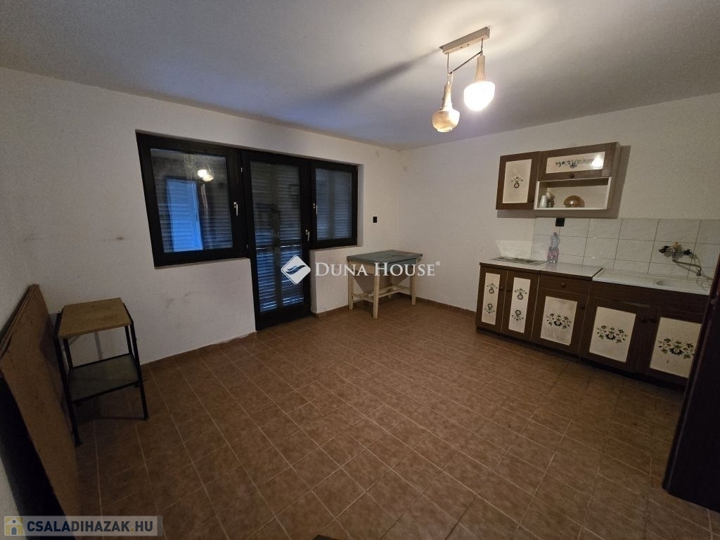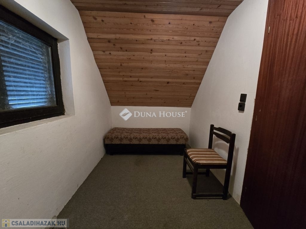 Gyódi Szőlőhegyen eladó egy 50 m²-es, belső kétszintes téglaépítésű kis ház stabil szerkezettel. A földszinten egy nagy konyhaétkező, zuhanyzó és WC, valamint egy előtér kapott helyet, amelyből a pince is megközelíthető. Az emeleten két szoba található.Az ingatlanban villany van, a vízellátás korábban fúrt kútról történt. A kút évek óta nincs használatban, működőképessége nem garantált. Gáz és csatorna nincs a telken, azonban az utcában több állandó lakos él, akik szintén kútvízzel oldják meg a vízellátást, így a rezsi alacsonyan tartható.A terület két, egymás mellett fekvő, külön helyrajzi számú telekből áll, 1 938 m², művelési ágból kivonásra került. Nagy része sík, kb. egyharmada enyhén dombos, gyümölcsfákkal beültetett. A terület és a ház is gondozást, illetve esztétikai felújítást igényel, ugyanakkor a szerkezet jó állapotú, így viszonylag könnyen lakhatóvá tehető.Az ingatlan tehermentes, akár 12 napon belül birtokba vehető. A környék csendes, rendezett, a szomszédság kifejezetten barátságos. Buszmegálló a közelben található, így a közlekedés is kedvező.További kérdéseivel és személyes megtekintésért várom hívását!