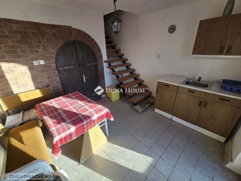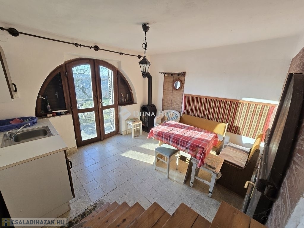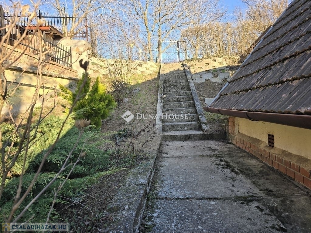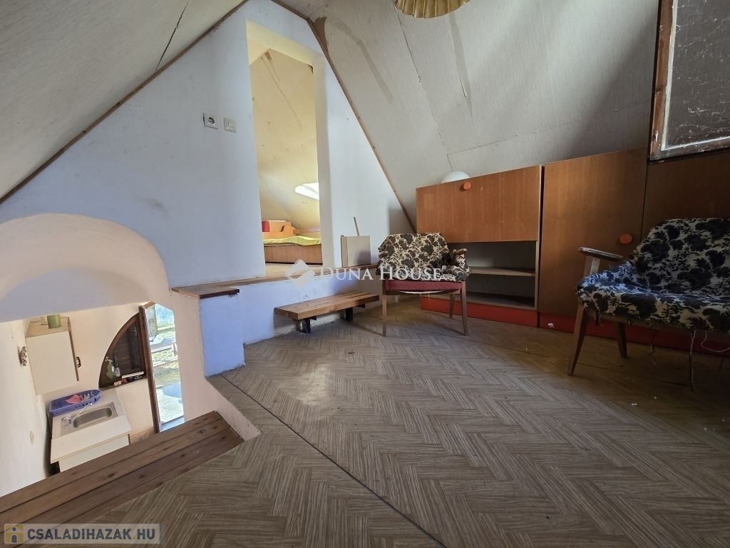 Panorámás zártkerti telek kis házzal eladó Gyódon, Pécstől 5 km-reGyód felső részén, a napos fennsíkon eladó egy 700 m²-es, panorámás, zártkerti telek egy kb. 20 m² alapterületű, belső kétszintes gazdasági épülettel, mindössze kb. 5 km-re Pécstől.Az épület 1985-ben épült, karbantartott állapotú. Nem lakóingatlanként használták, de felújítással akár állandó lakhatásra is alkalmassá tehető, a környéken többen életvitelszerűen laknak.Az alsó szinten konyhaétkező, wc kézmosóval, valamint egy könnyen megközelíthető pince található (csak egy lépcsőfok vezet le). A felső szinten két egymásból nyíló helyiség van, amelyek szobaként használhatók.A telek körbekerített, két utcáról is megközelíthető, aszfaltos úton elérhető, hivatalos házszámmal rendelkezik (Mezőszél utca 38). A terület lejtős, nyugati tájolású, így napos és szép panorámával rendelkezik.A telken vezetékes víz van a házban, ami a zártkerti ingatlanoknál külön előny. Gáz a telken belül megtalálható, jelenleg kályhával fűthető az épület. Emellett kerti csap, ciszterna, ülepítős szennyvízmegoldás, pince és egy kisebb szerszámtároló is tartozik az ingatlanhoz.Ideális választás lehet hétvégi háznak, kertészkedéshez vagy felújítás után akár állandó lakhatásra is.A terület művelés alól kivont,így azonnal birtokba vehető.További kérdéseivel és személyes megtekintésért várom hívását,akár hétvégén is!
