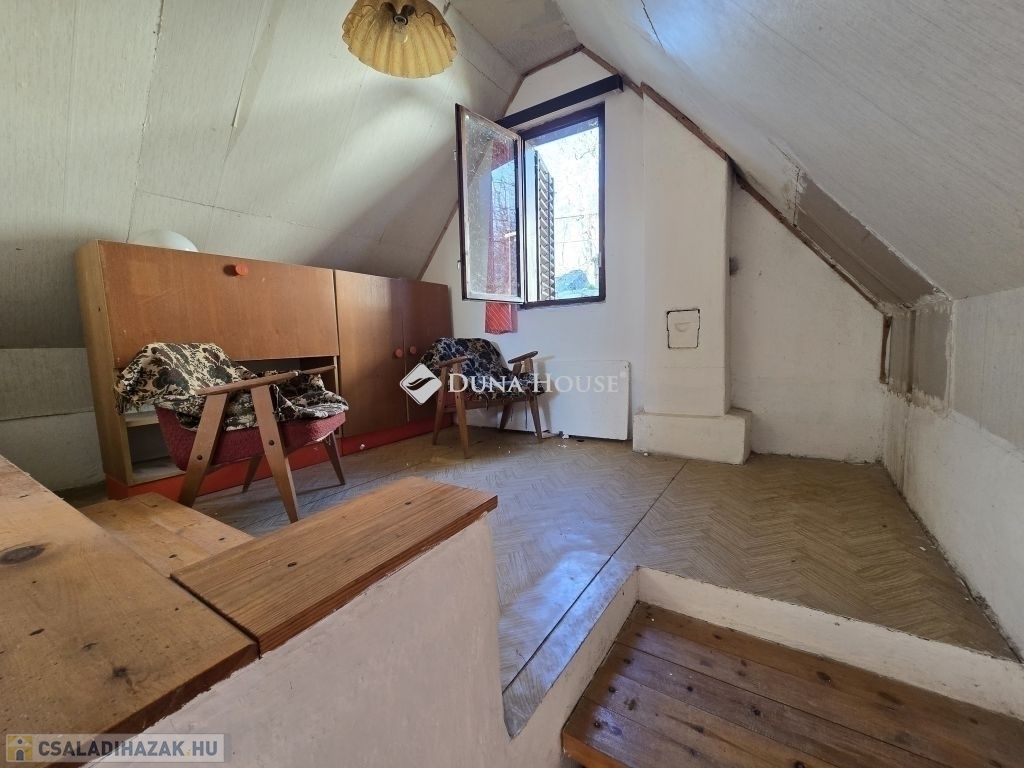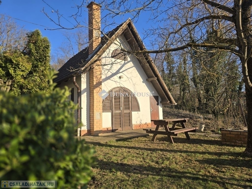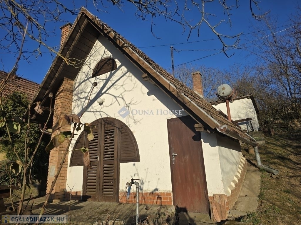 Panorámás zártkerti telek kis házzal eladó Gyódon, Pécstől 5 km-reGyód felső részén, a napos fennsíkon eladó egy 700 m²-es, panorámás, zártkerti telek egy kb. 20 m² alapterületű, belső kétszintes gazdasági épülettel, mindössze kb. 5 km-re Pécstől.Az épület 1985-ben épült, karbantartott állapotú. Nem lakóingatlanként használták, de felújítással akár állandó lakhatásra is alkalmassá tehető, a környéken többen életvitelszerűen laknak.Az alsó szinten konyhaétkező, wc kézmosóval, valamint egy könnyen megközelíthető pince található (csak egy lépcsőfok vezet le). A felső szinten két egymásból nyíló helyiség van, amelyek szobaként használhatók.A telek körbekerített, két utcáról is megközelíthető, aszfaltos úton elérhető, hivatalos házszámmal rendelkezik (Mezőszél utca 38). A terület lejtős, nyugati tájolású, így napos és szép panorámával rendelkezik.A telken vezetékes víz van a házban, ami a zártkerti ingatlanoknál külön előny. Gáz a telken belül megtalálható, jelenleg kályhával fűthető az épület. Emellett kerti csap, ciszterna, ülepítős szennyvízmegoldás, pince és egy kisebb szerszámtároló is tartozik az ingatlanhoz.Ideális választás lehet hétvégi háznak, kertészkedéshez vagy felújítás után akár állandó lakhatásra is.A terület művelés alól kivont,így azonnal birtokba vehető.További kérdéseivel és személyes megtekintésért várom hívását,akár hétvégén is!