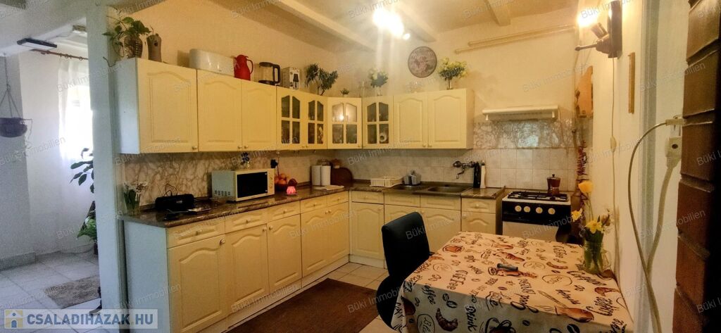 Az ingatlan azonnal birtokba vehető. Nekem a tágas konyha és a nappali nyerte el legjobban a tetszésemet. Ide gyönyörűen besüt a nap, kényelmesen lehet készíteni benne a családnak a finom ételeket és bőven van hely a szükséges háztartási gépeknek. Közben a nappaliban még egy hatalmas kanapé mellett is marad hely az ebédlő asztalnak is, ahol kényelmesen elfér az egész család a születésnapi ebédnél. Tágas mérete miatt megosztható, de a szülők is kényelmesen pihenhetnek itt és közben igény szerint egy kis dolgozó sarok is kialakítható. A két kisebb szoba tökéletes kis kuckó a gyerekeknek, vagy a nagyiknak. A hőszigetelt nyílászárok, és vastag falak gondoskodnak a lakás szigeteléséről, hogy nyáron hűvös télen pedig kellemesen meleg legyen. A folyosón találunk még egy nagy kamrát, ahol bőven van hely a finom befőtteknek vagy a kolbásznak és egyéb dolgainknak. Ezen kívül még egy kazánház és egy háztartási helyiség, és fás szín is biztosítja, hogy kényelmesen el tudjuk helyezni a család tárgyait, eszközeit, gyerekek játékait, biciklit, fűnyírót, itt mindennek találunk helyet.